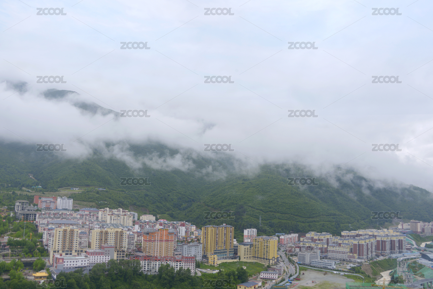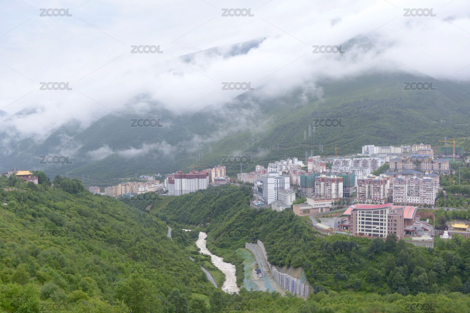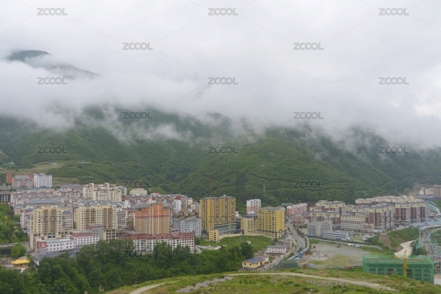 中國四川川西高原甘孜州州府康定市城市俯拍