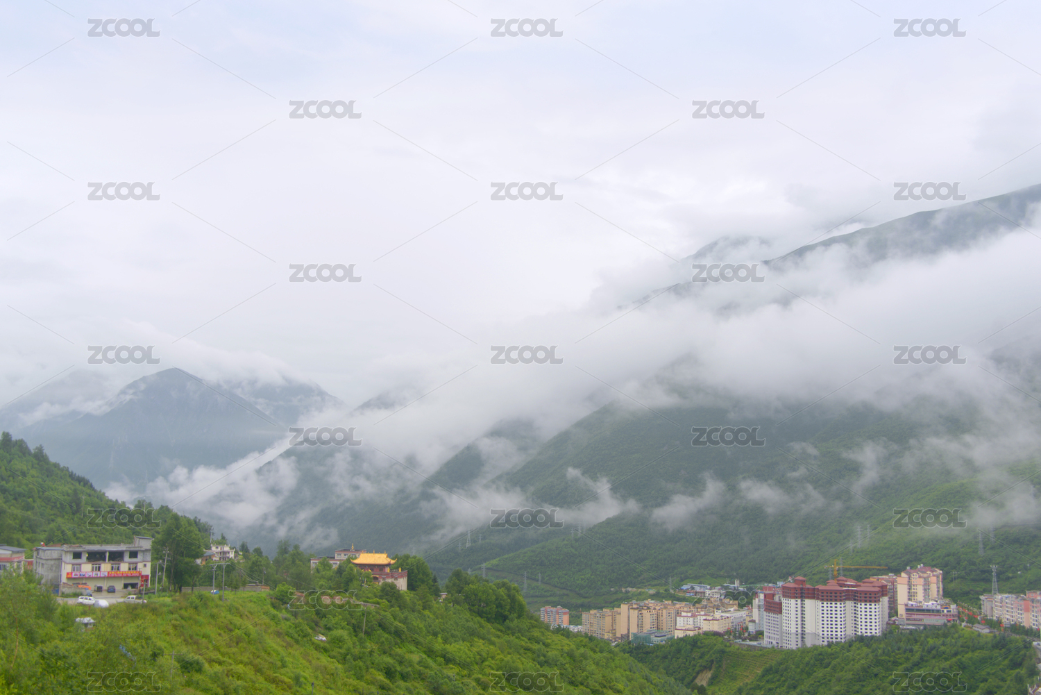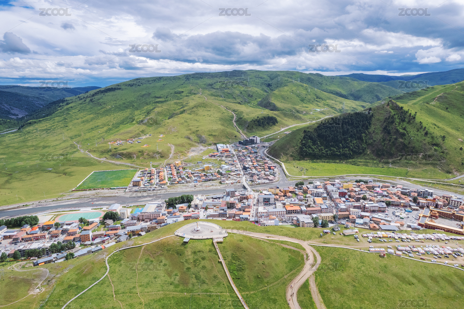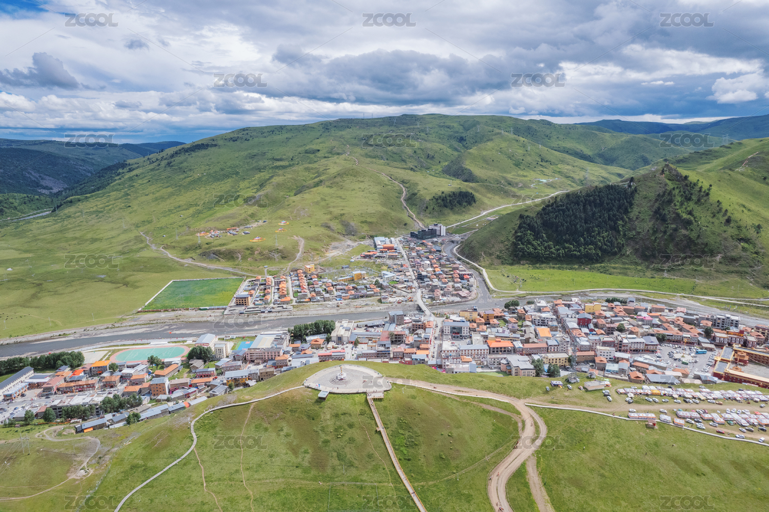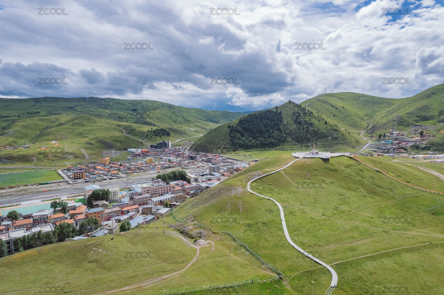中國四川川西高原甘孜州州府康定市城市俯拍