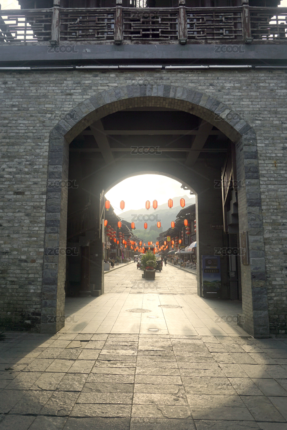 陜西漢中青木川古鎮(zhèn)老街傳統(tǒng)過街牌坊
