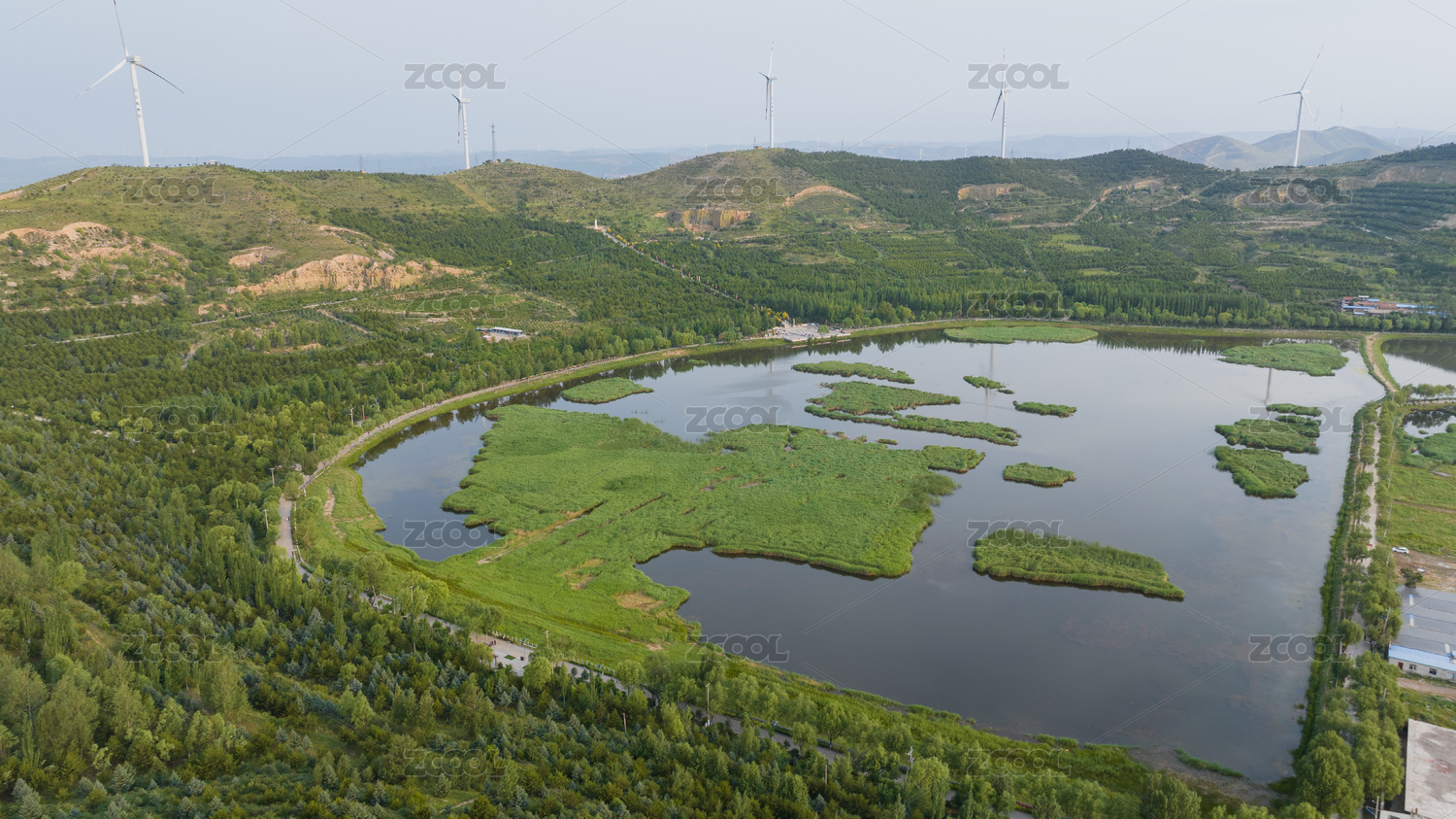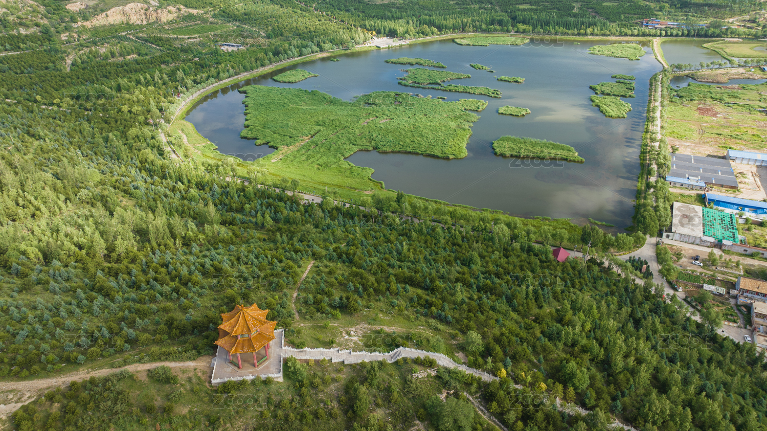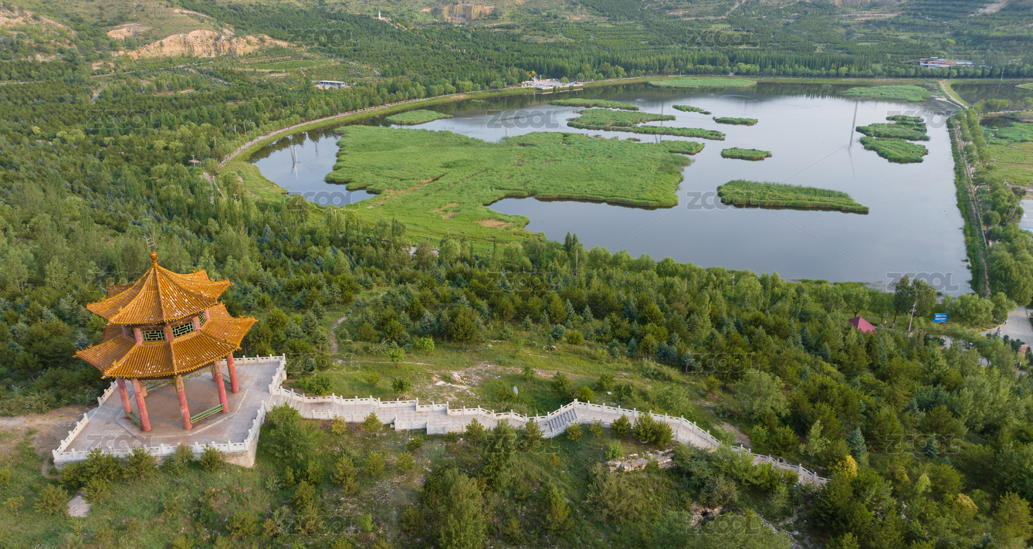 航拍晉西北邊塞小城山西神池西海子濕地公園