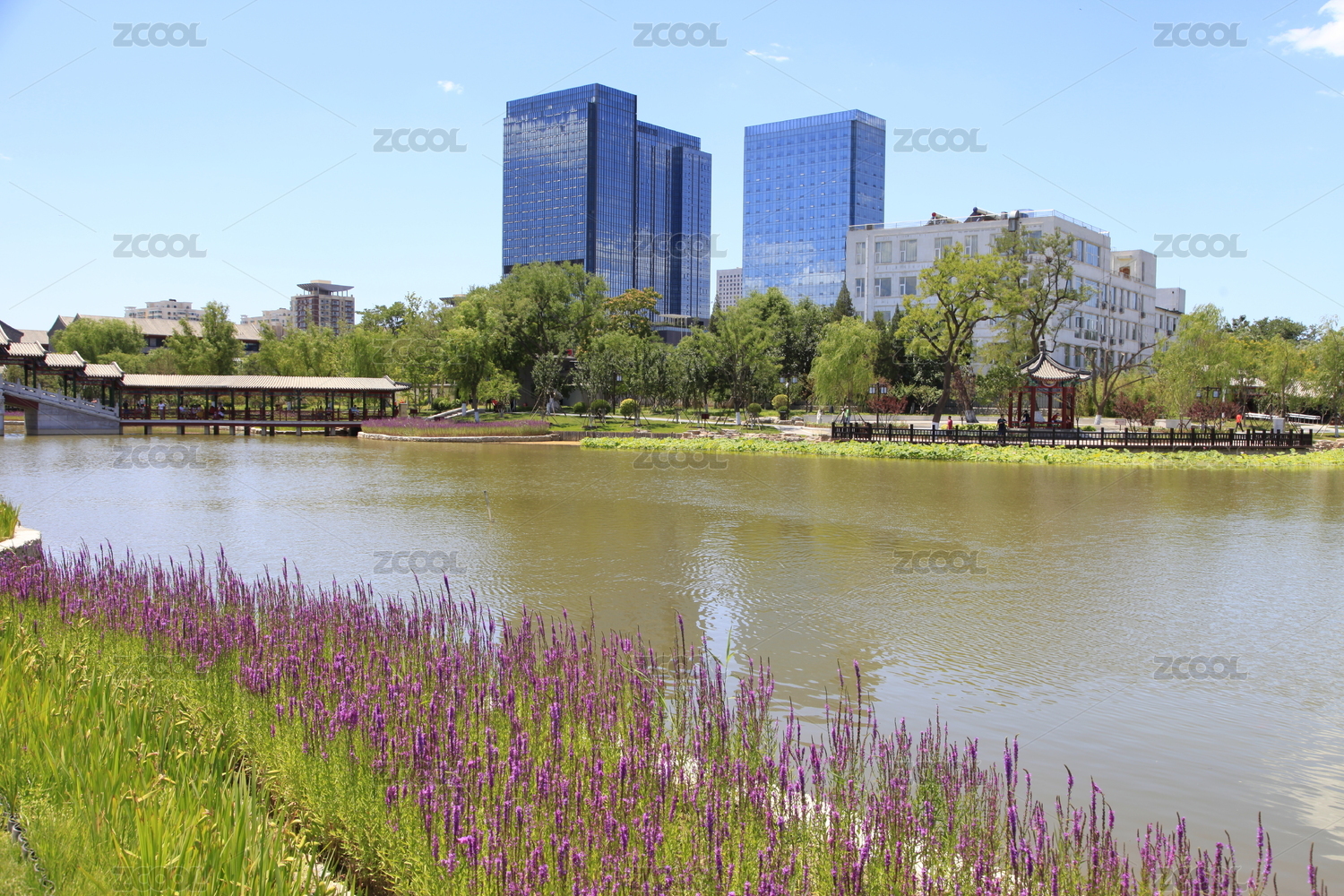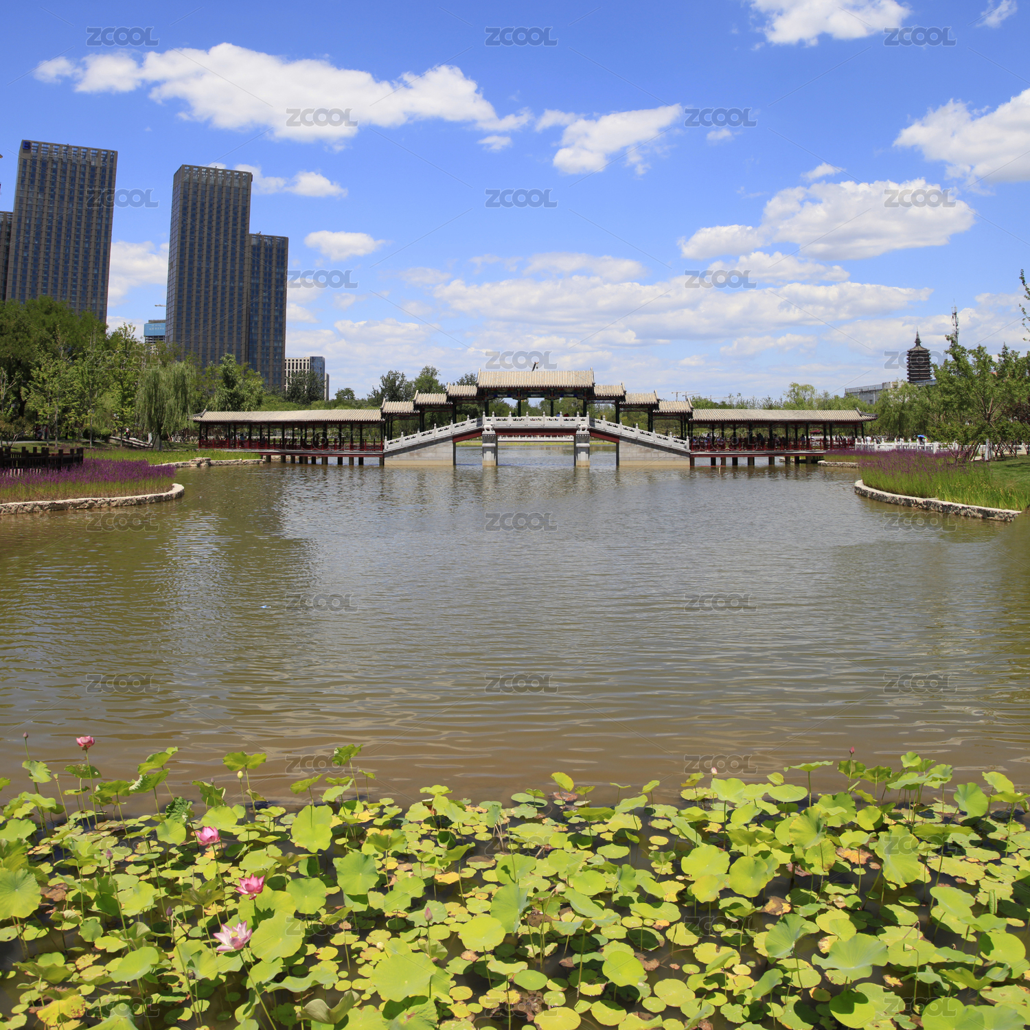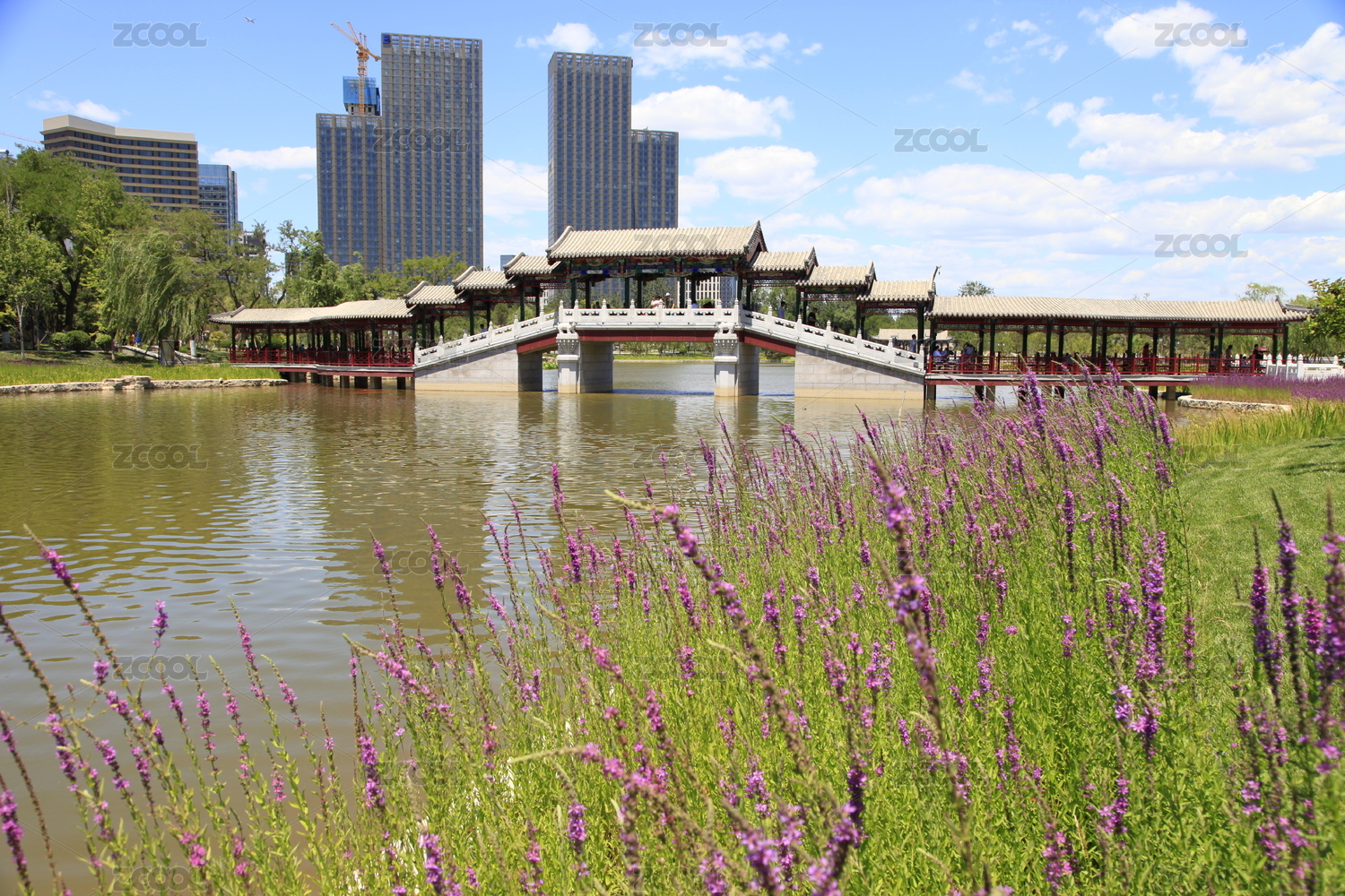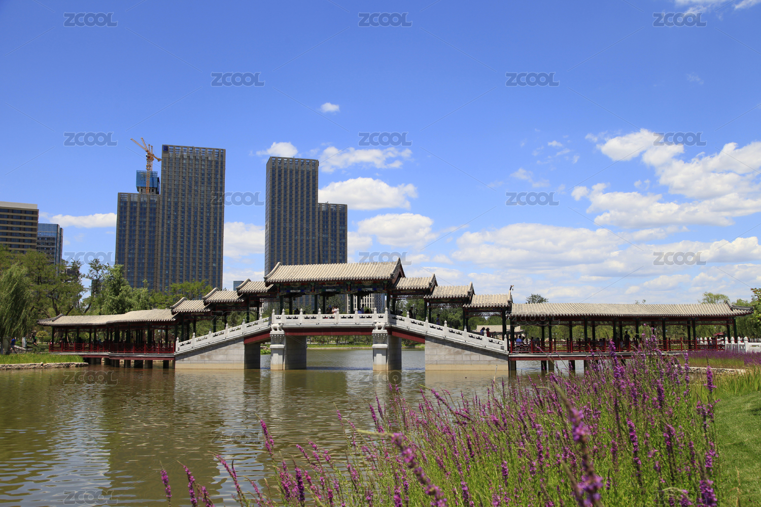 中國北京通州區(qū)西海子公園中的云曲橋