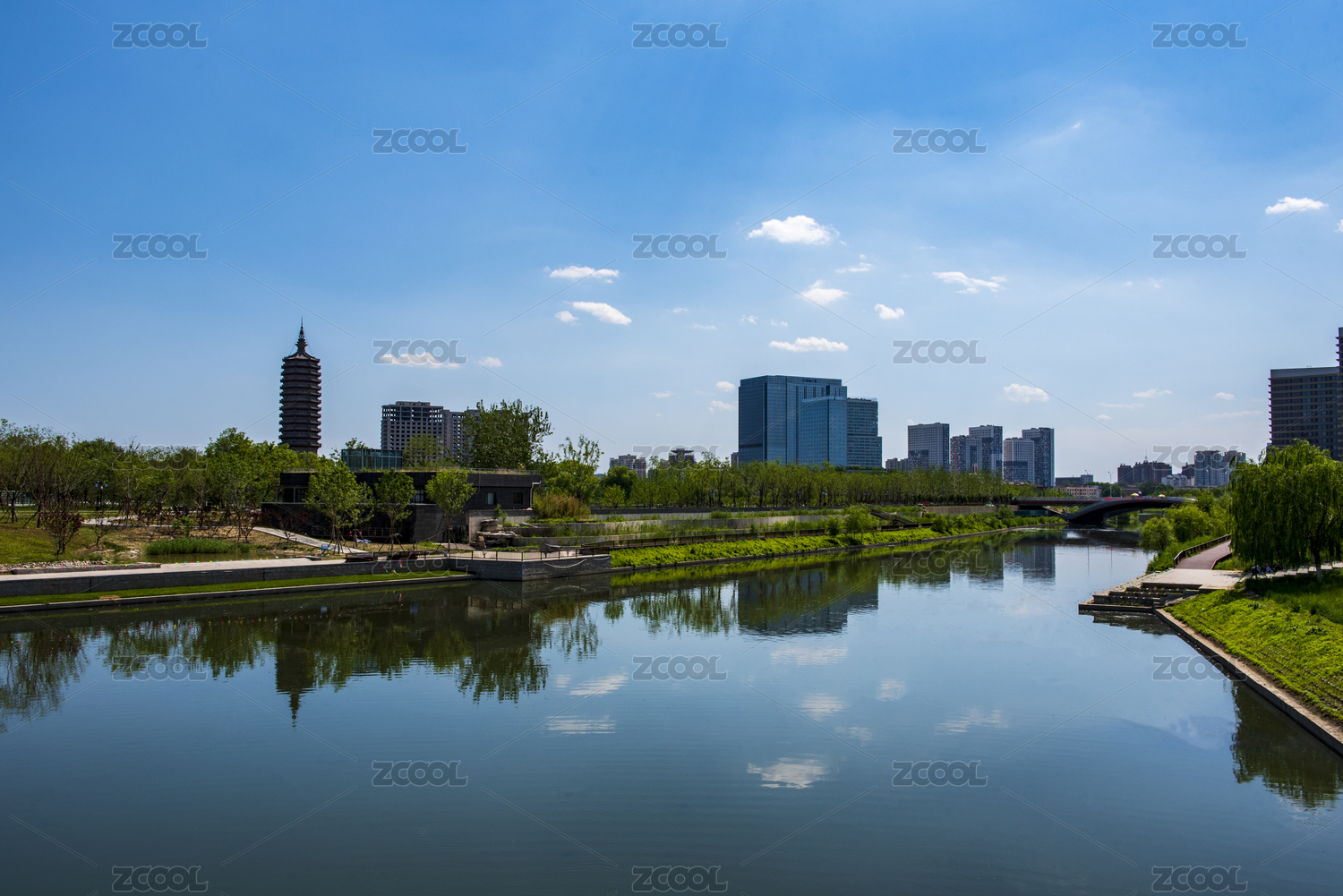 北京通州城市副中心通惠河兩岸的建筑群