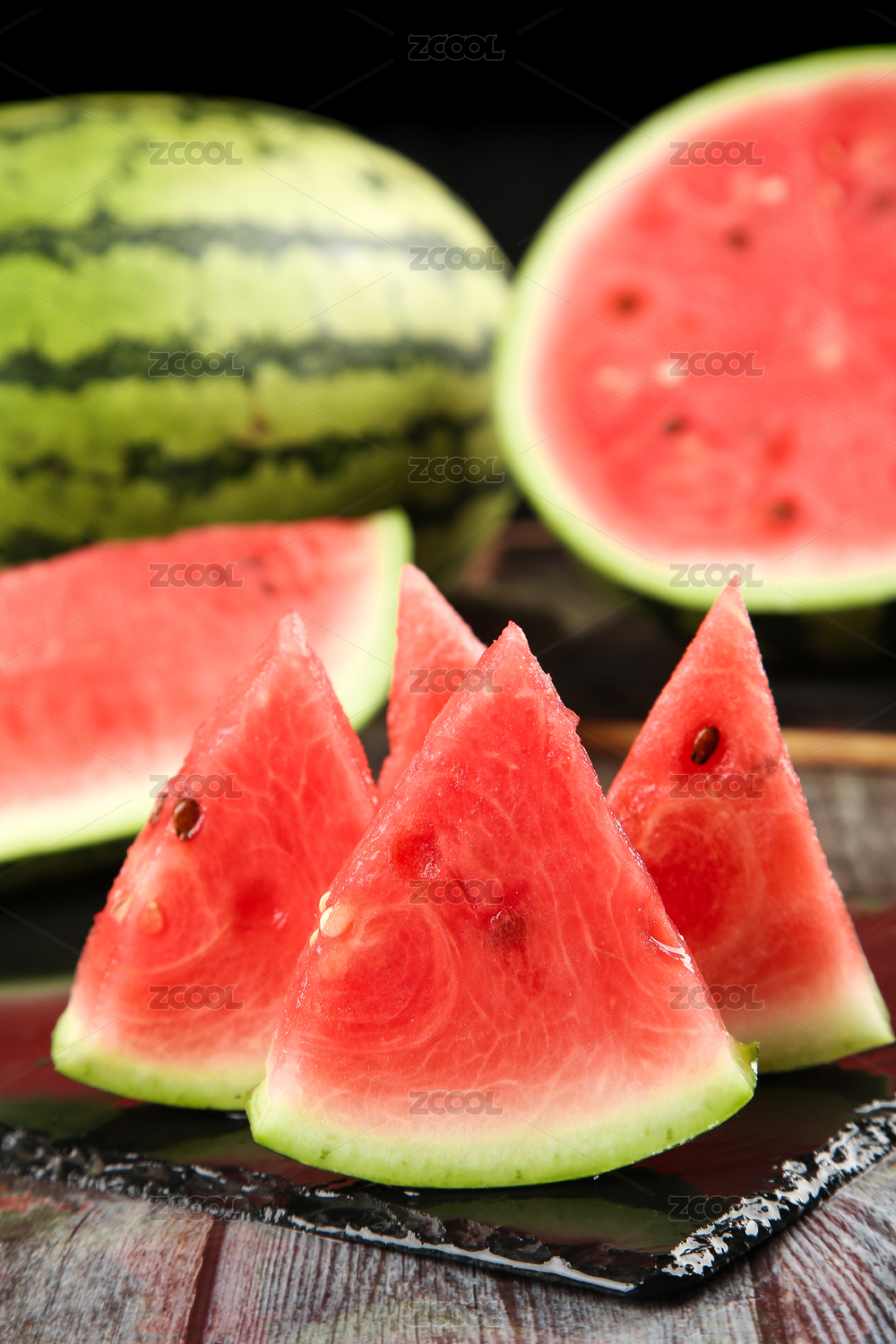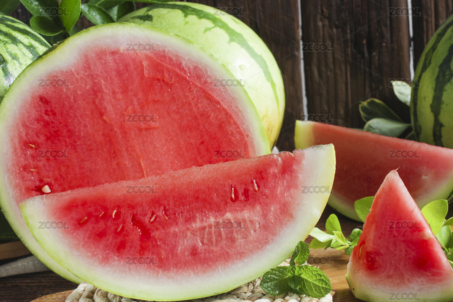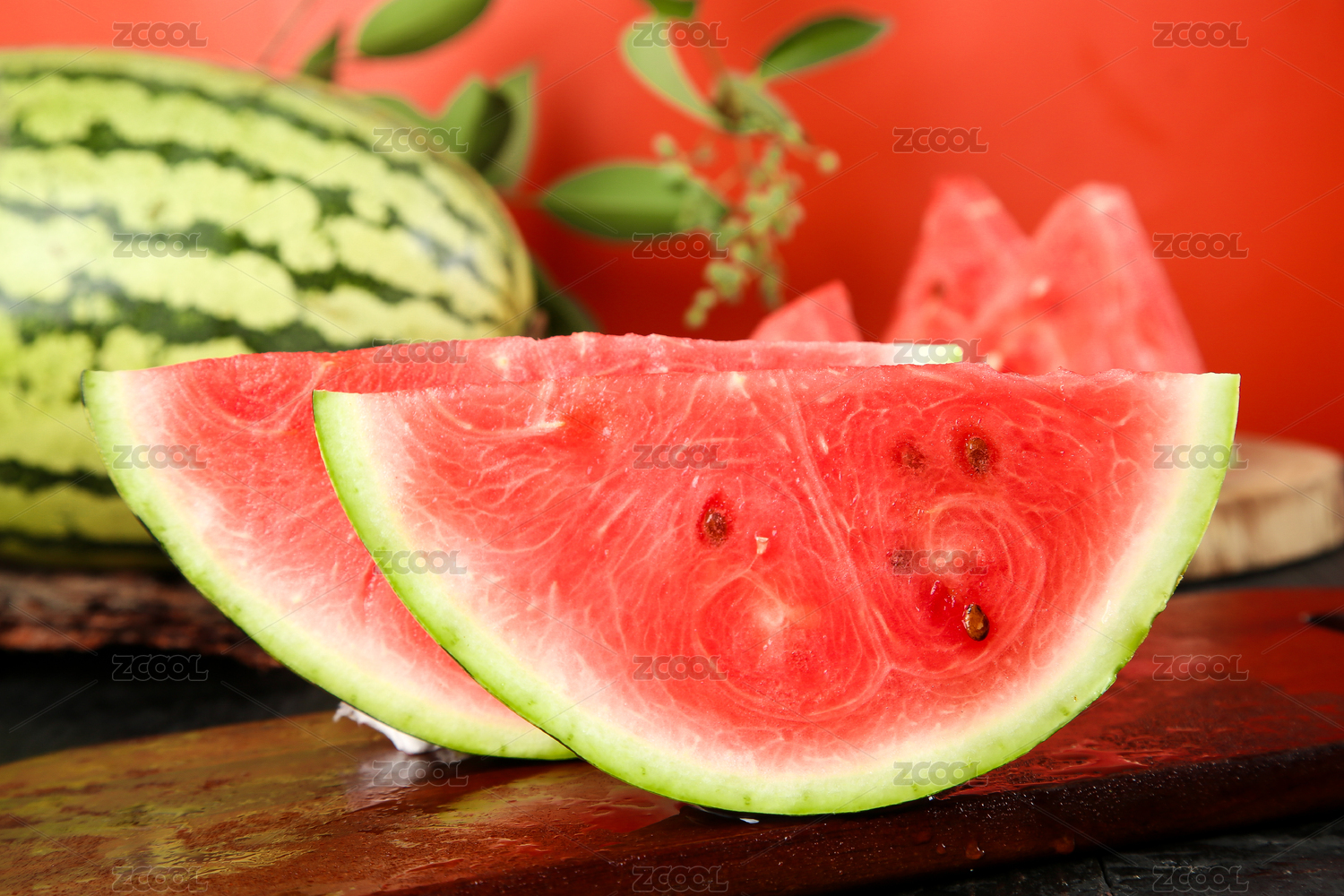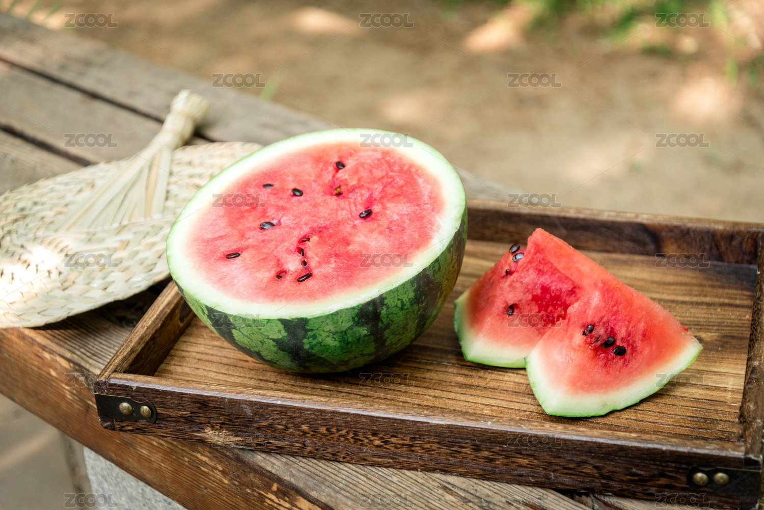 夏季午后室外木桌上切開的冰鎮(zhèn)西瓜