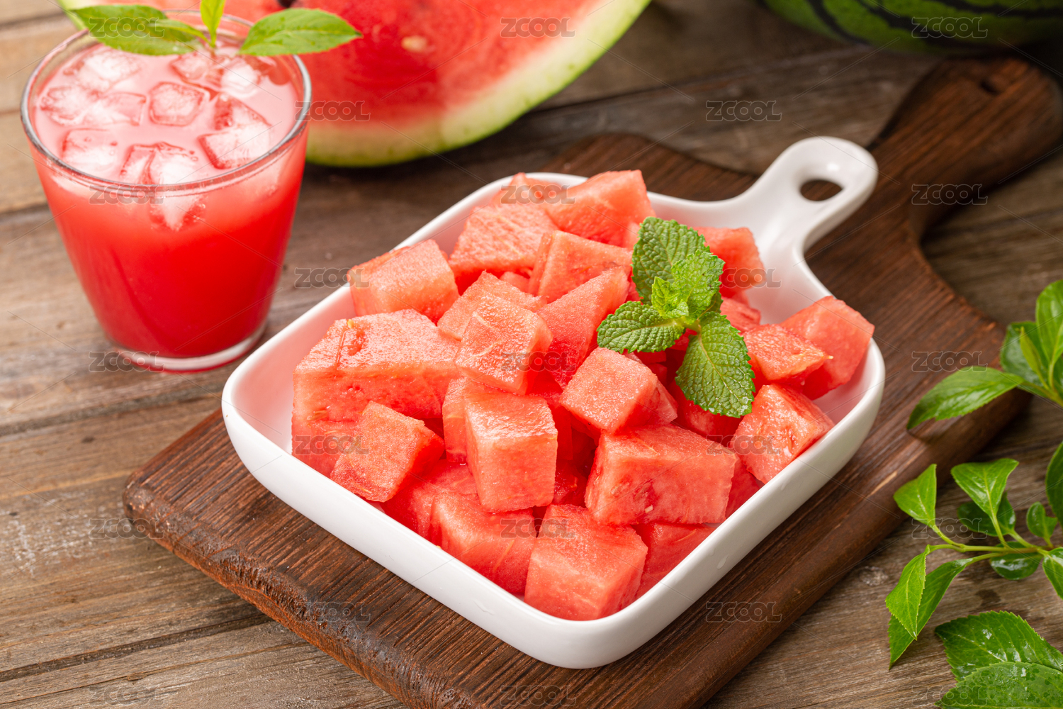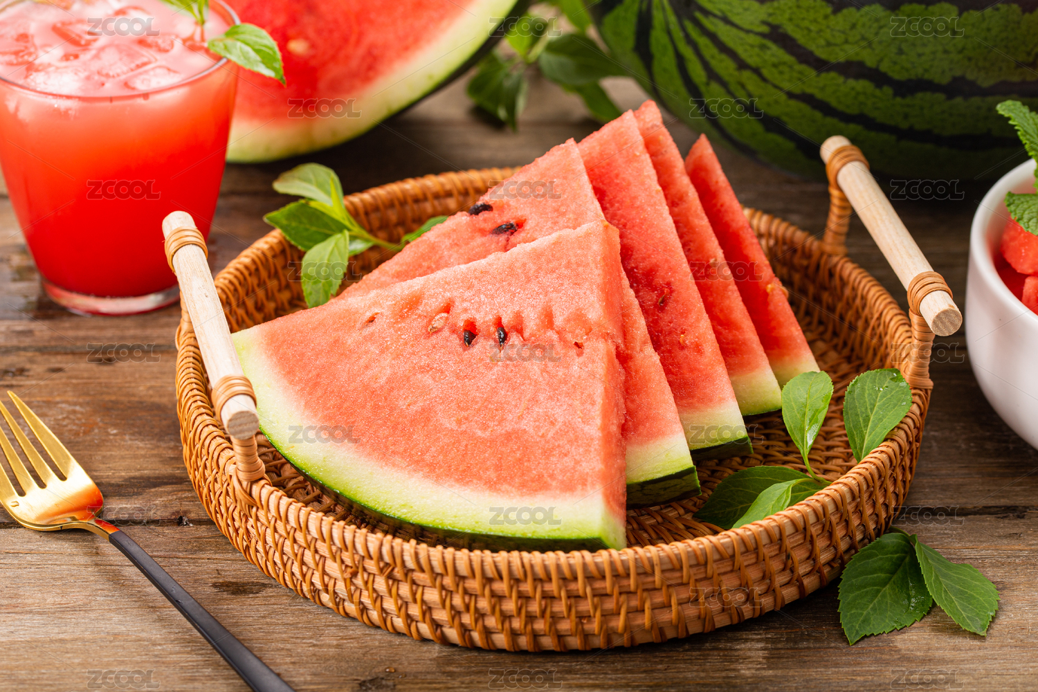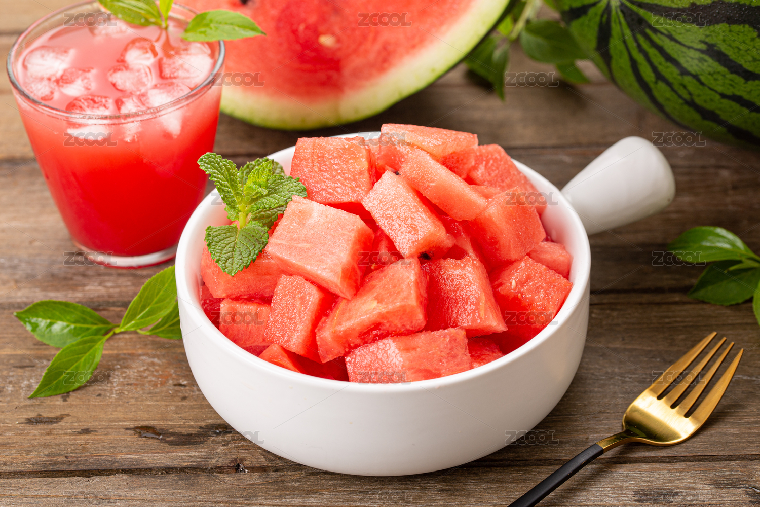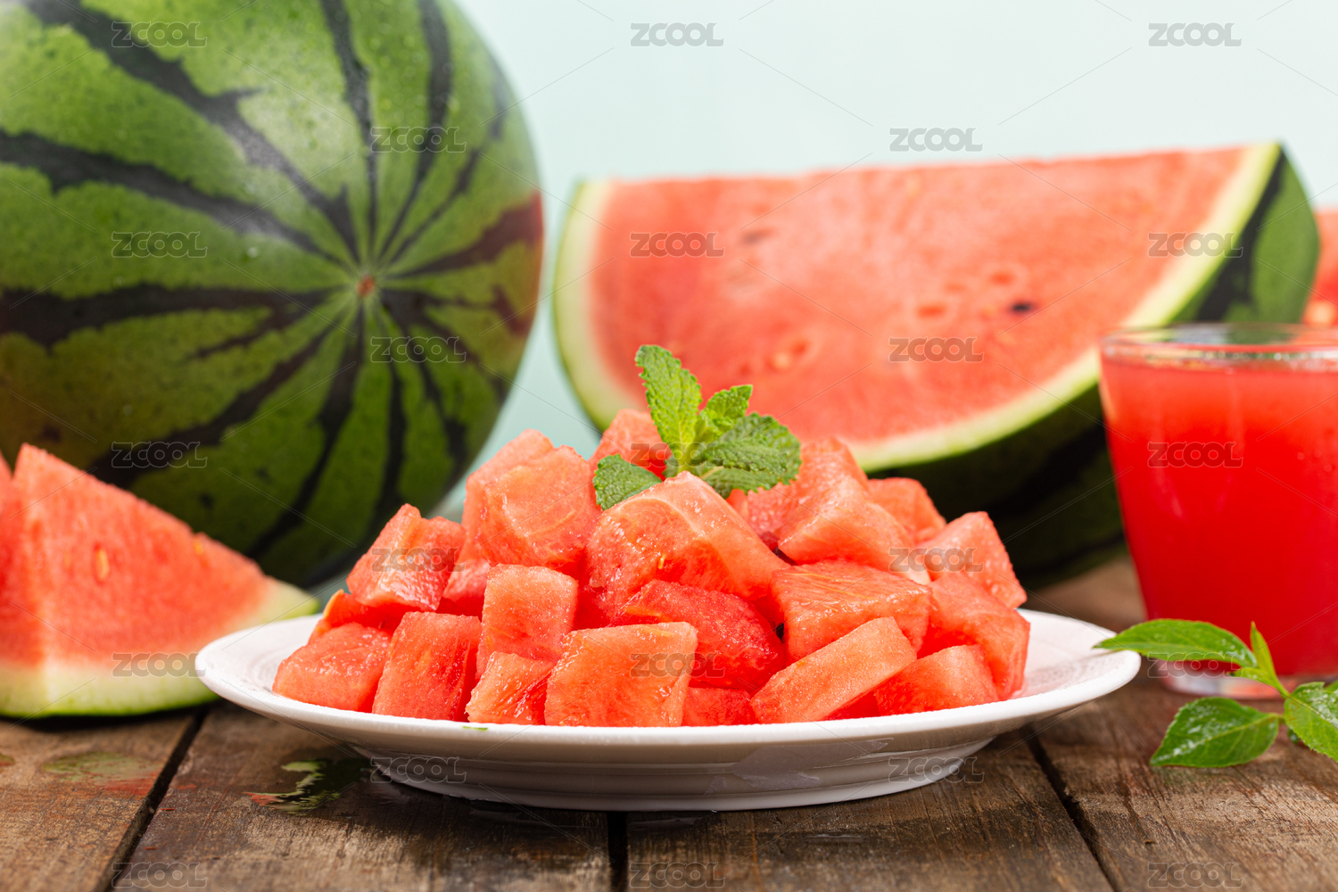 夏季午后室外木桌上切開的冰鎮(zhèn)西瓜