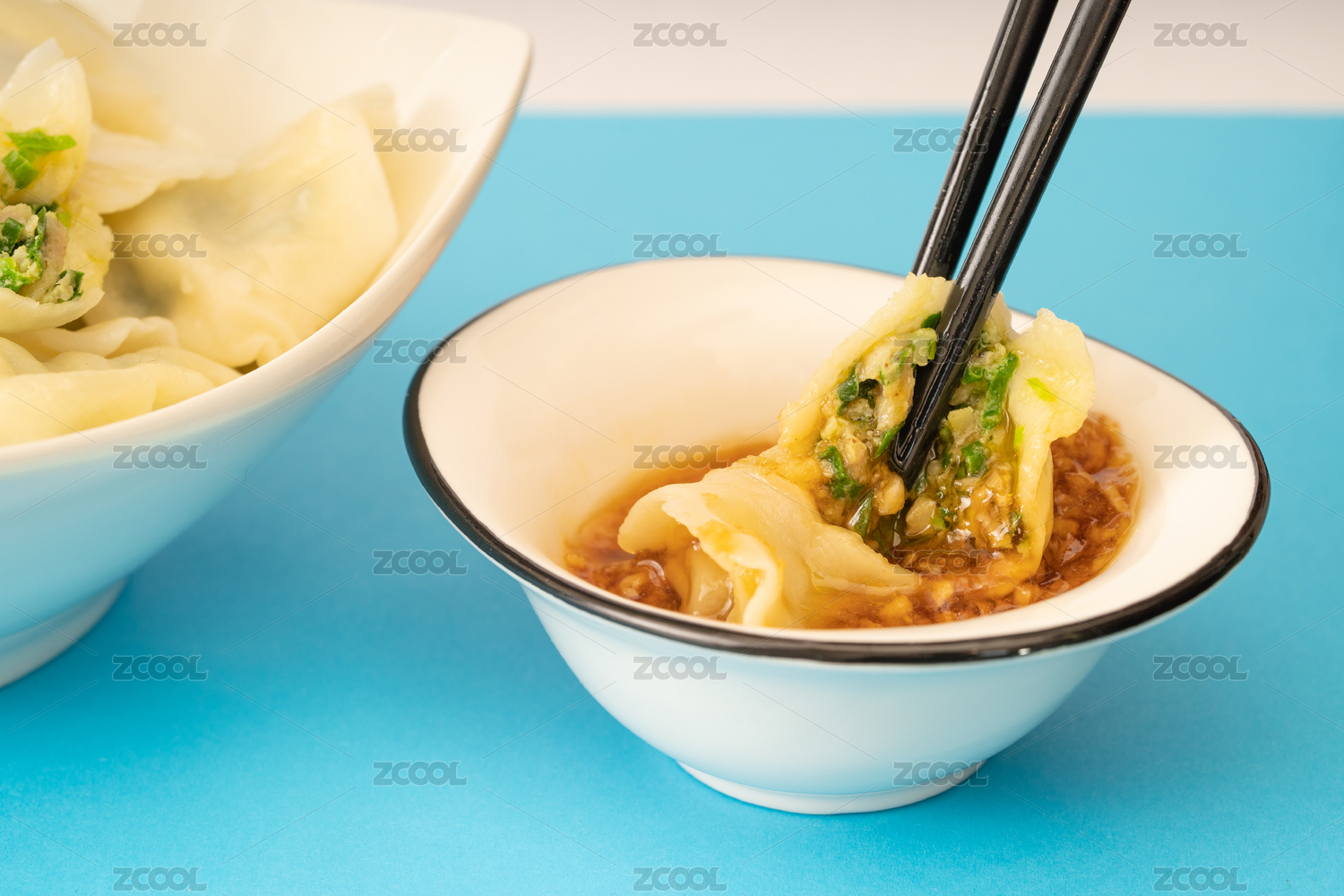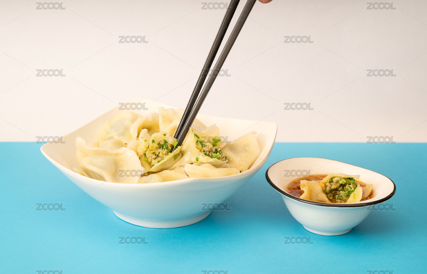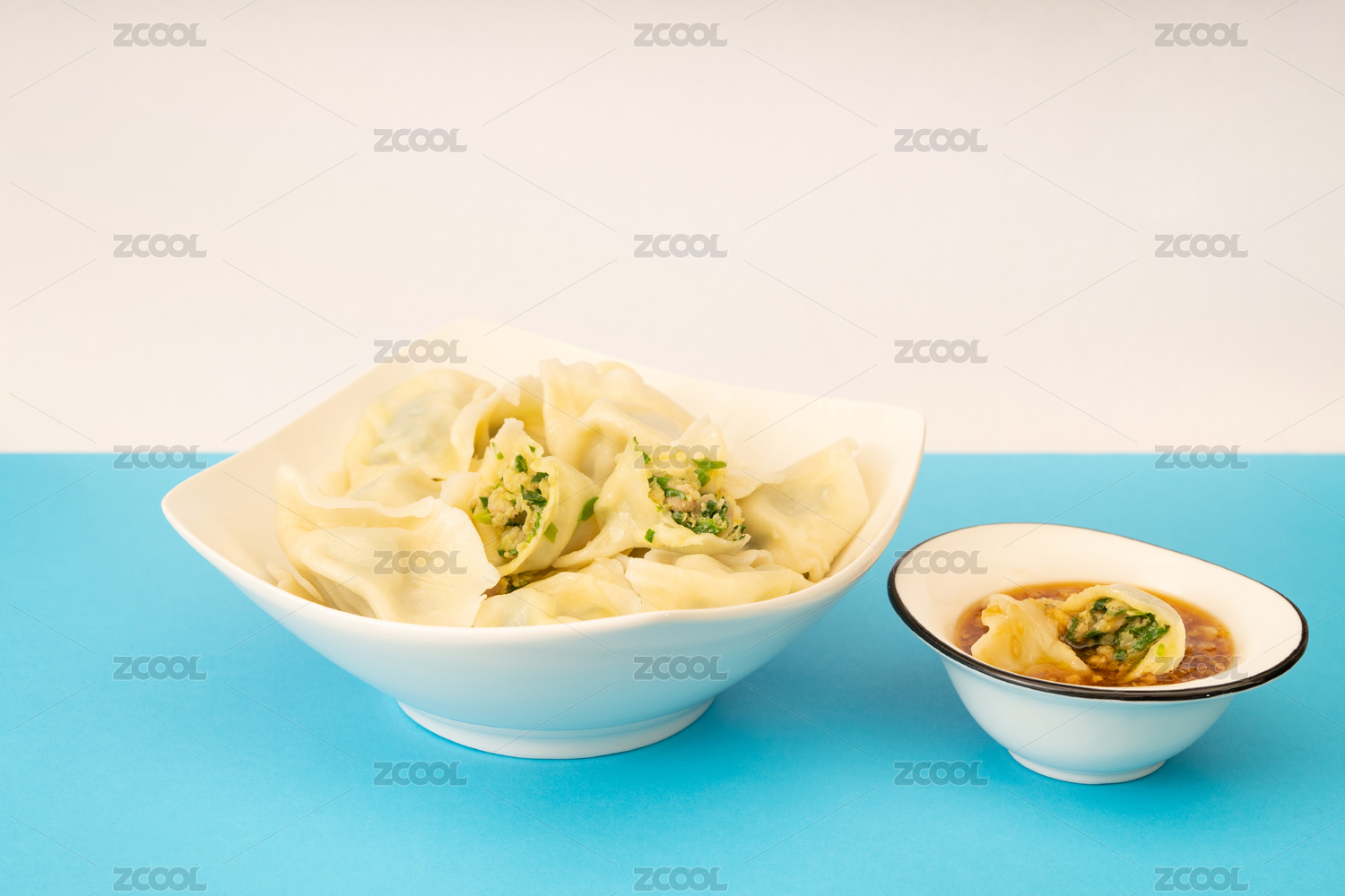 純色背景下的中國(guó)特色節(jié)日主食三鮮餃子