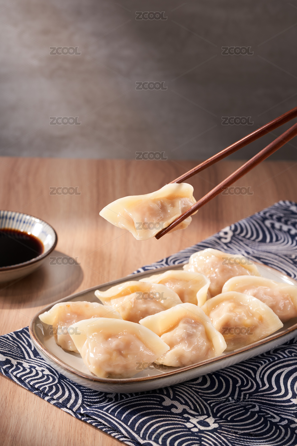 木紋背景下美味誘人的餃子場(chǎng)景