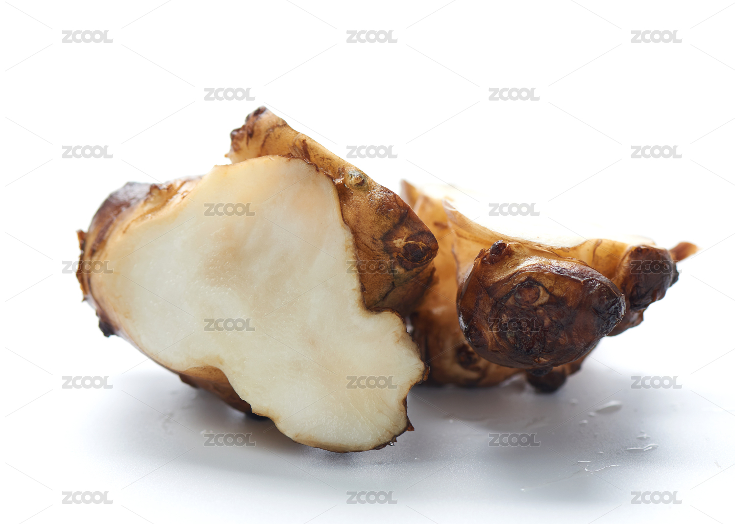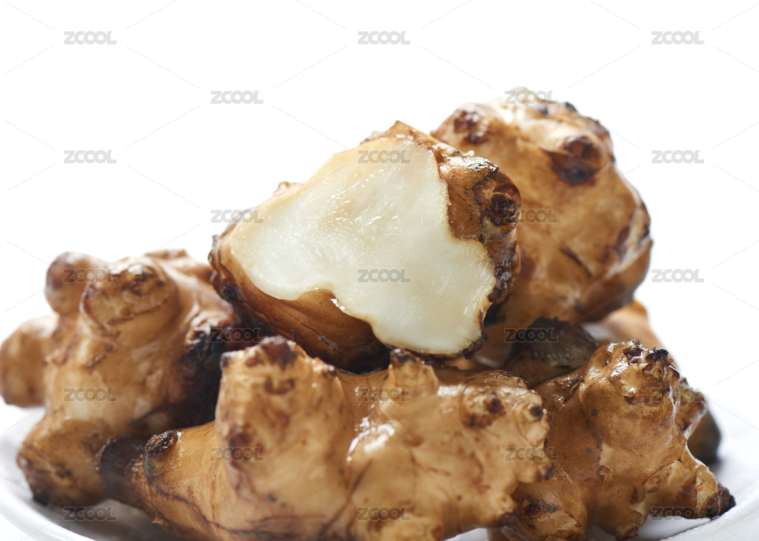 白色背景上新鮮洋姜