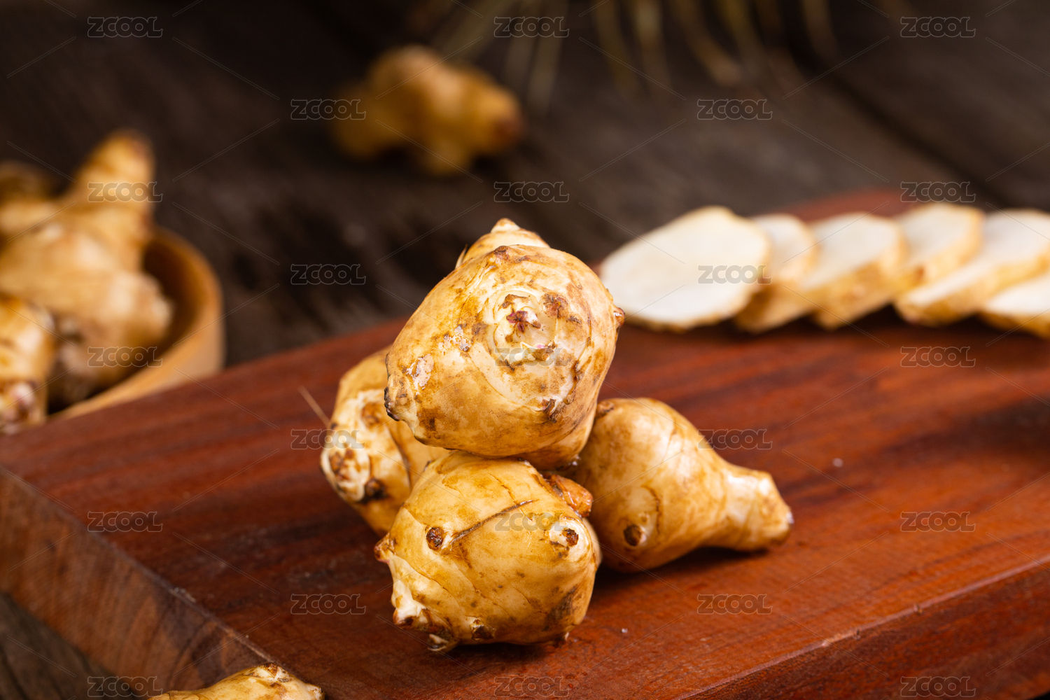 堆在木板上的新鮮洋姜