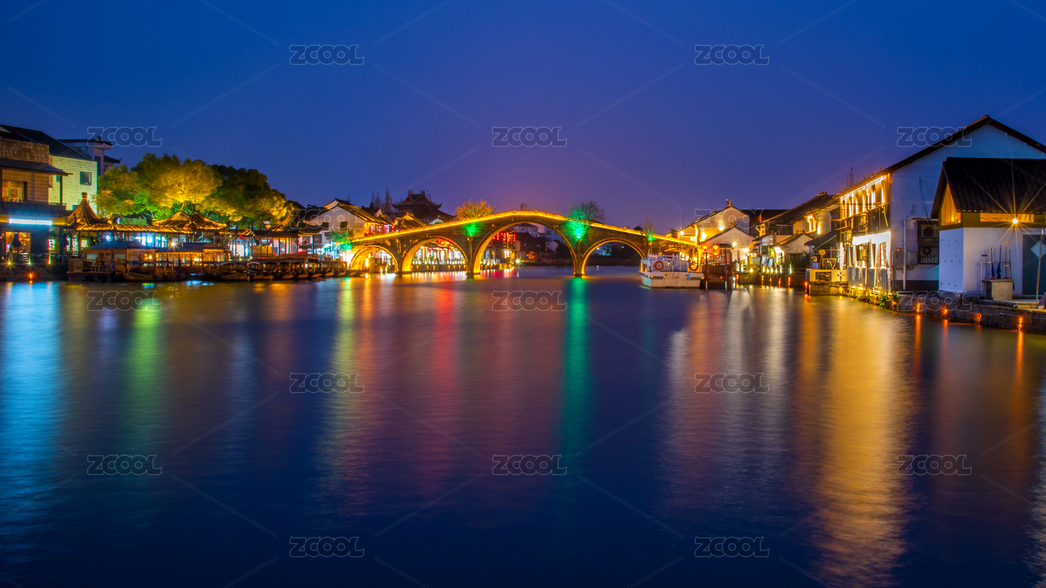 中國上海朱家角古鎮(zhèn)夜景