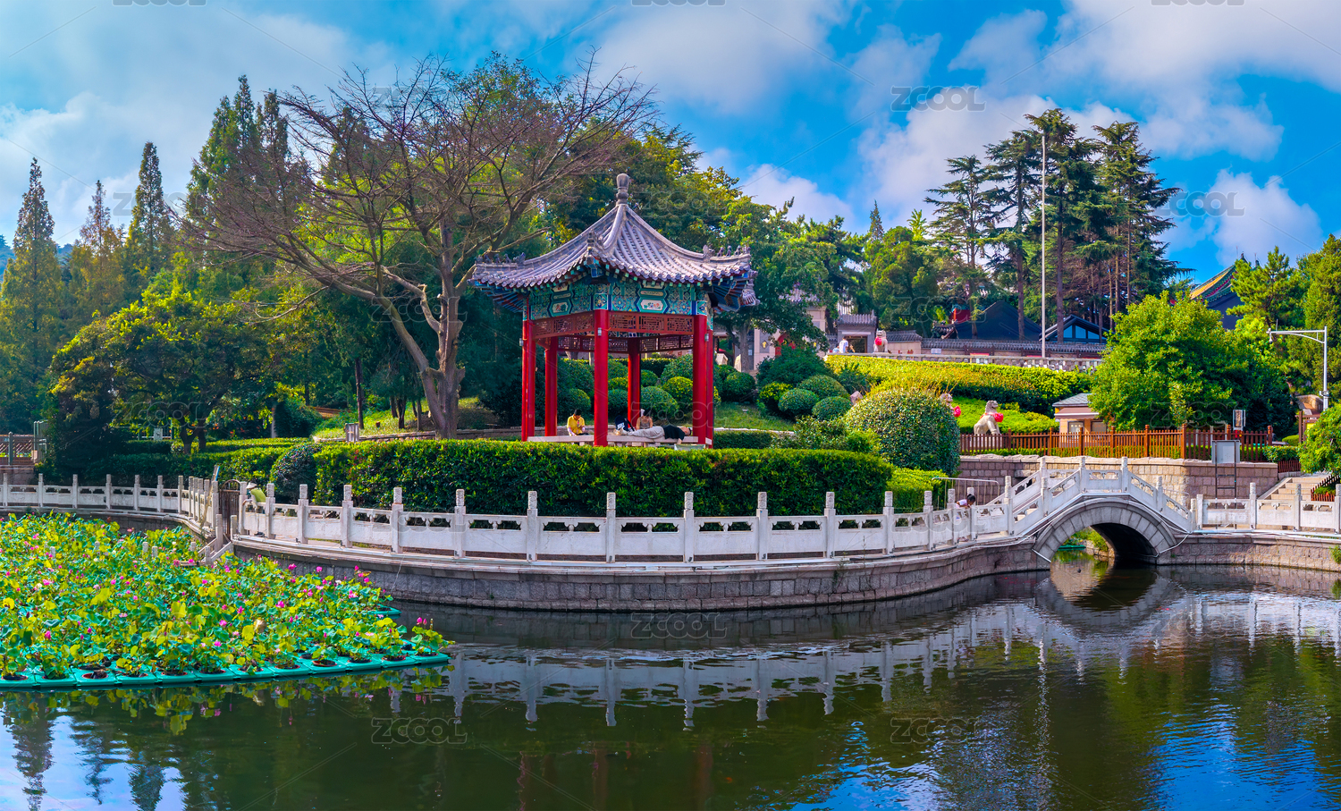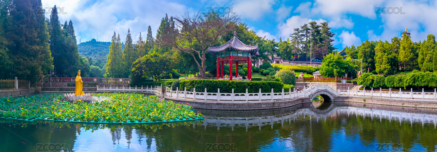 青島市湛山寺放生池航拍風光