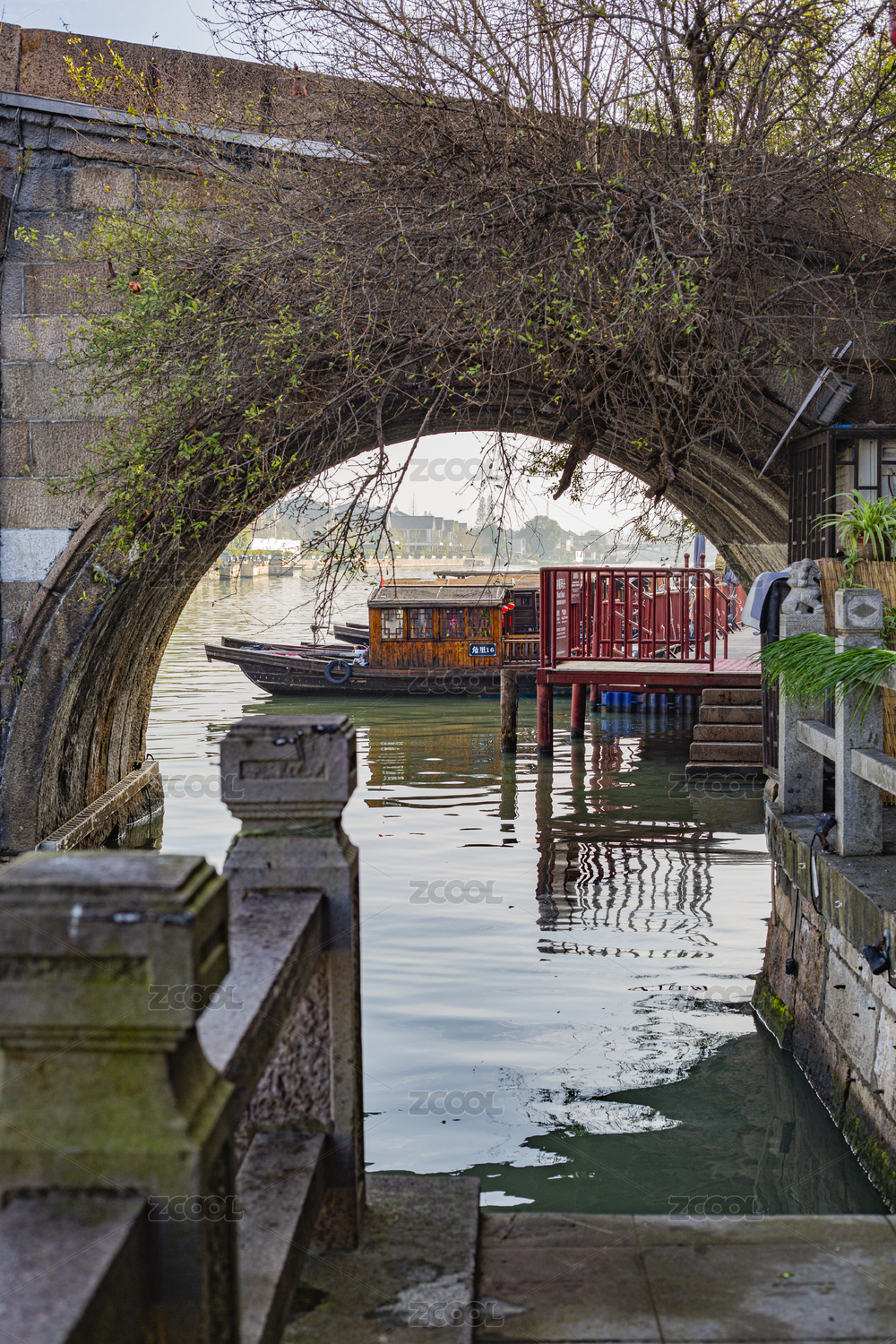 上海朱家角古鎮(zhèn)放生橋下的游船