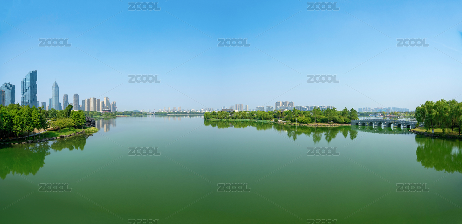 浙江紹興古纖道水鄉(xiāng)長堤與城市天際線航拍