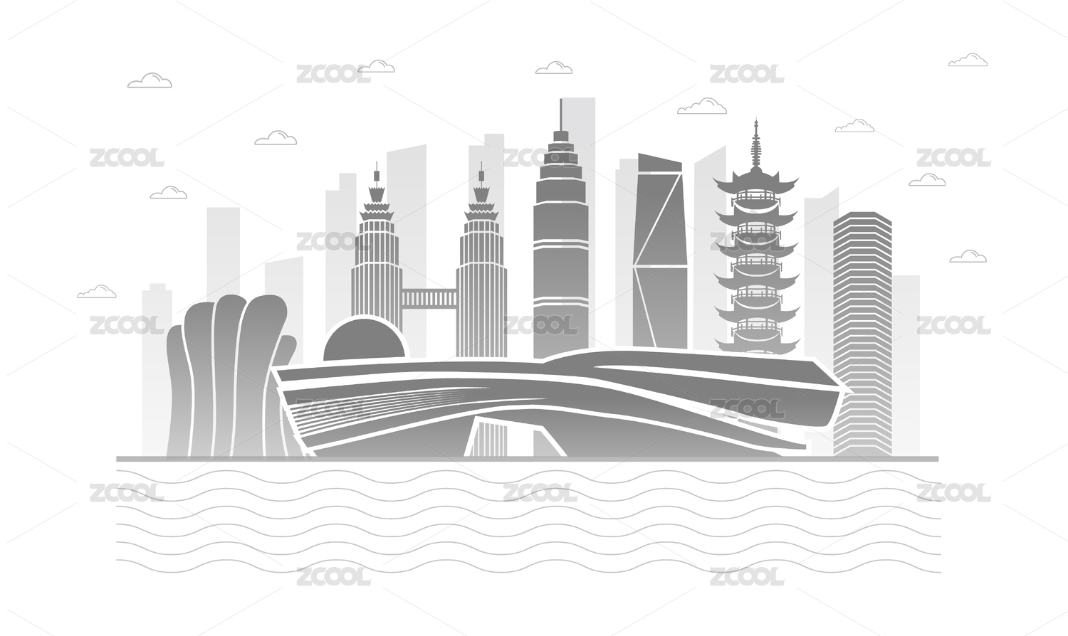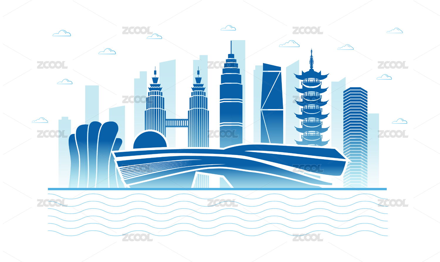 紹興城市天際線矢量地標(biāo)建筑插畫