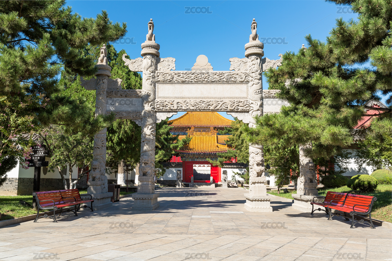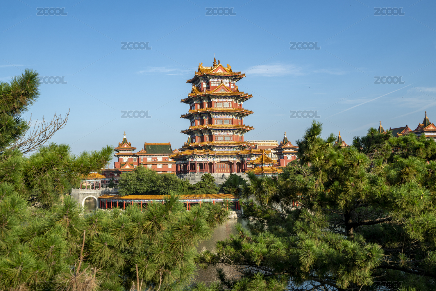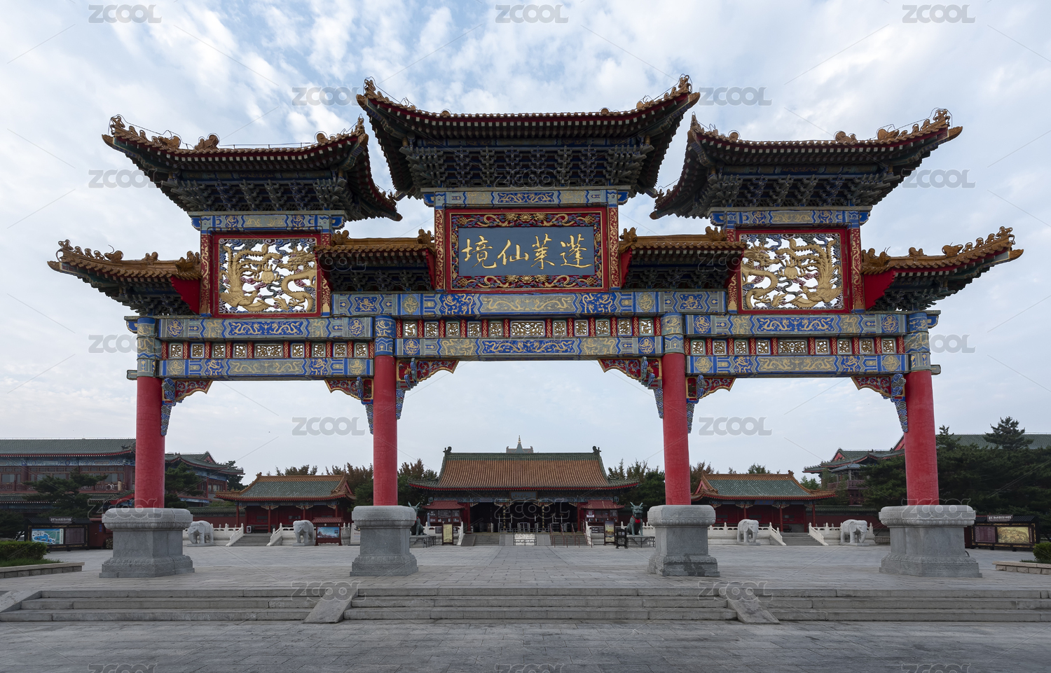 中國(guó)山東省蓬萊三仙山景區(qū)中式琉璃瓦古建筑
