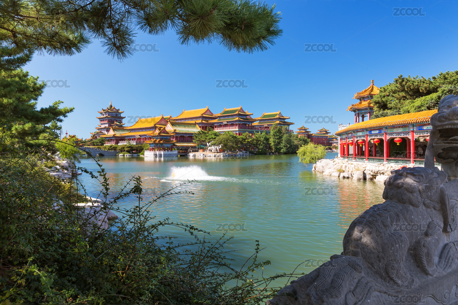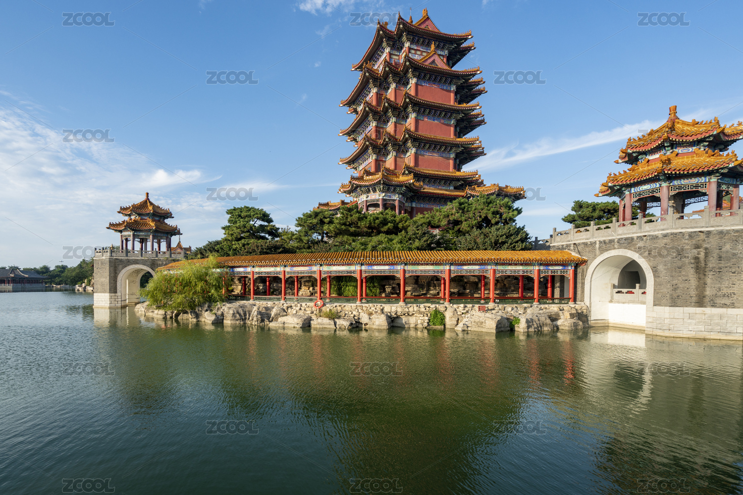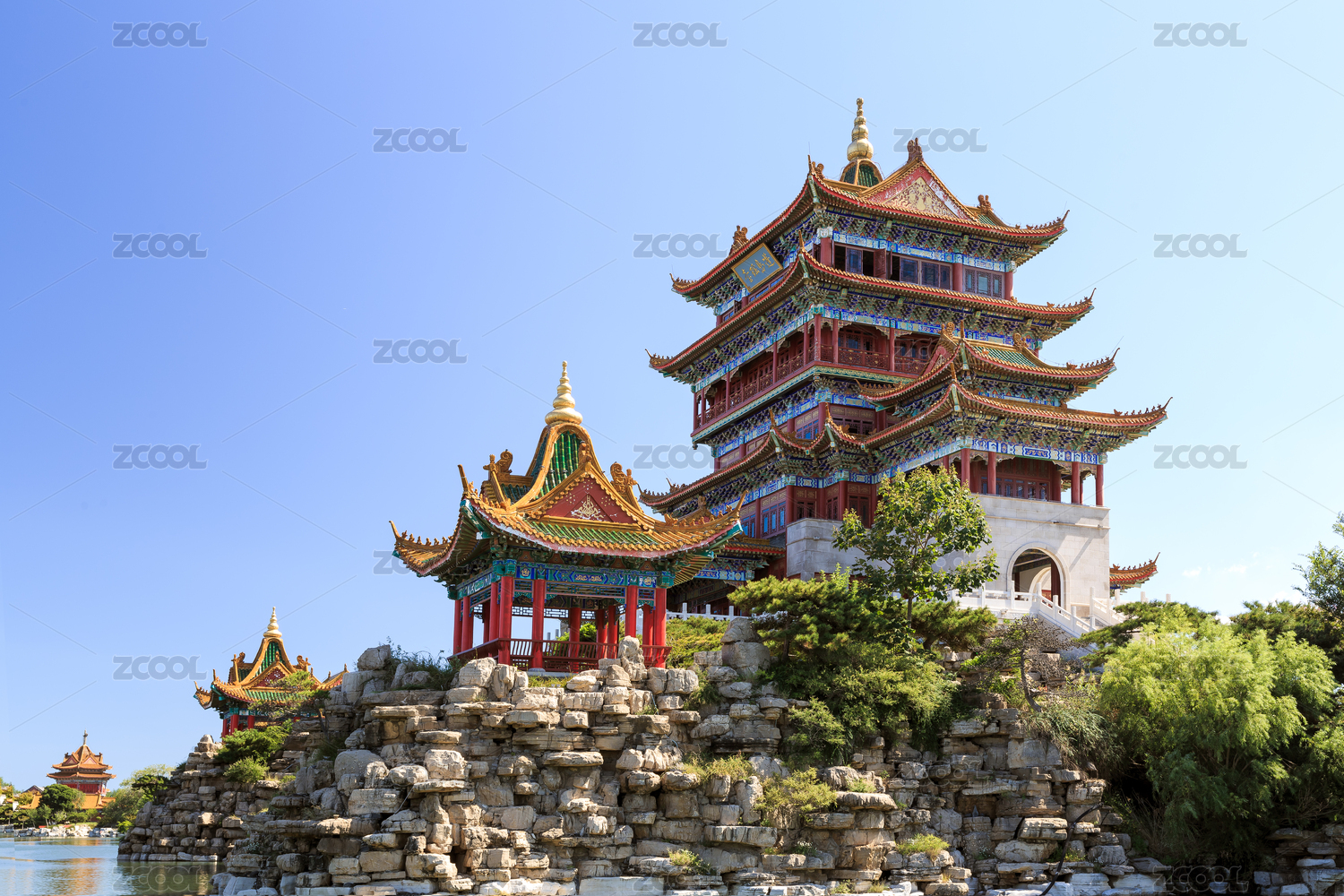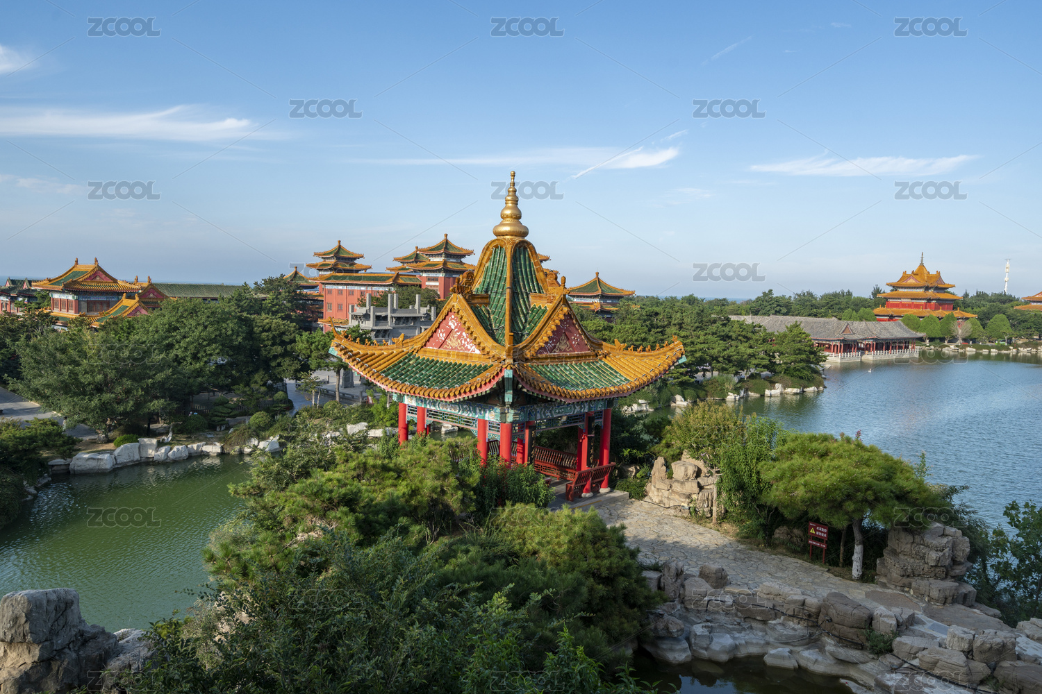 中國(guó)山東省蓬萊三仙山景區(qū)水景建筑園林景觀