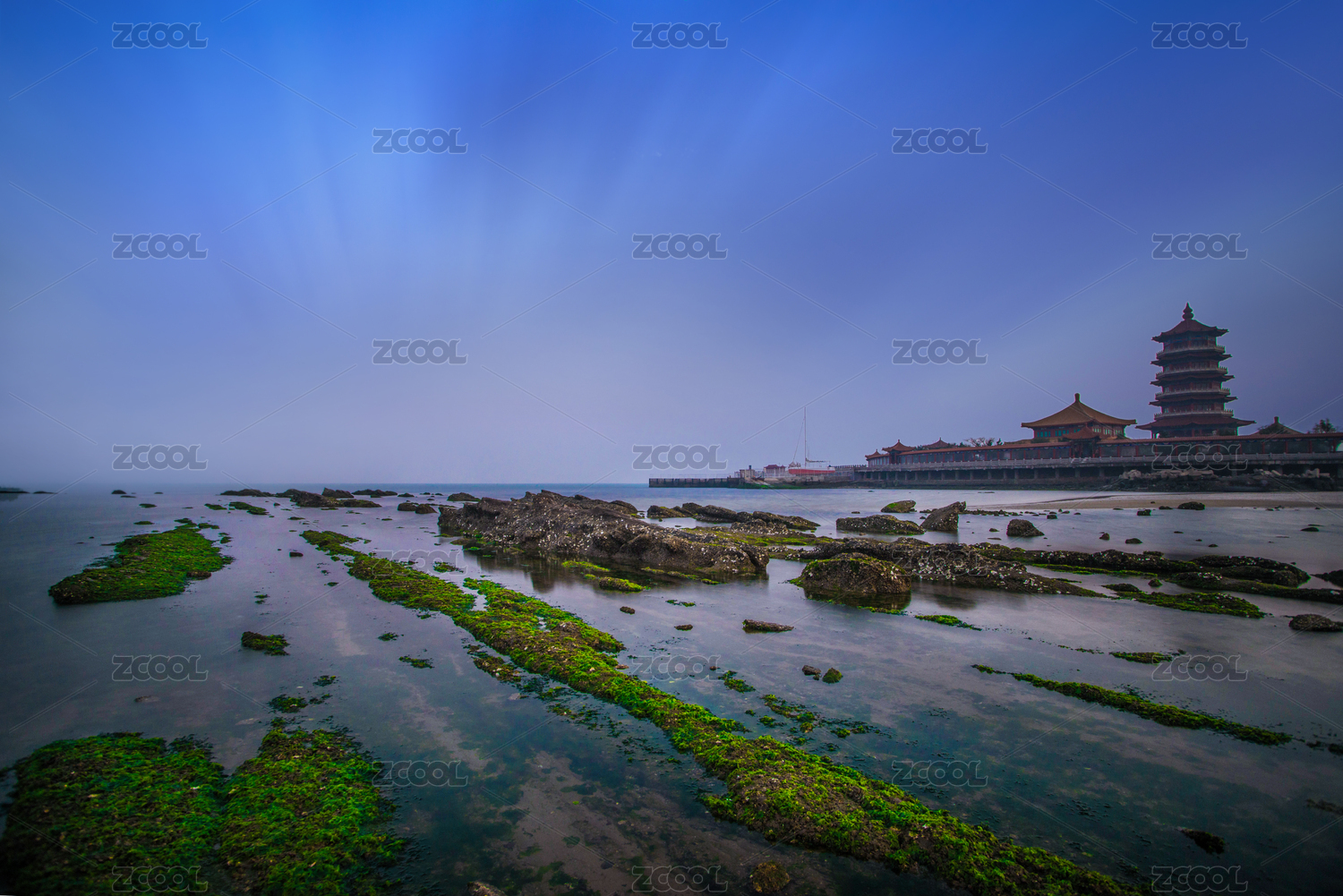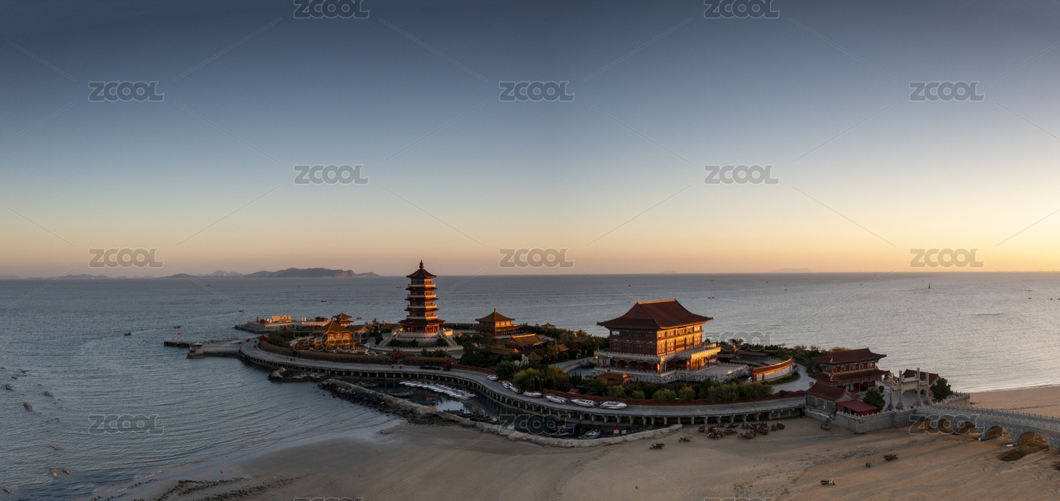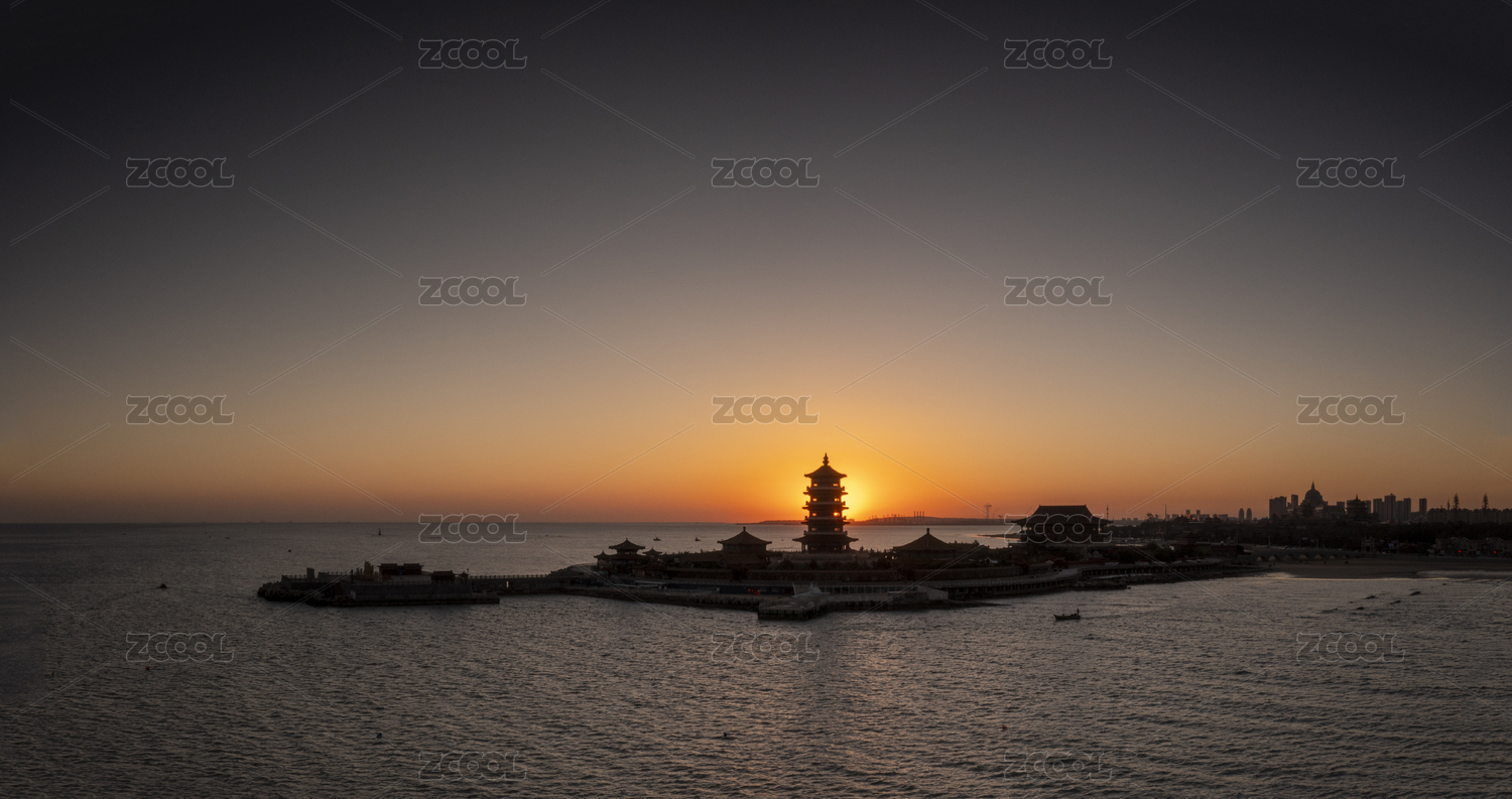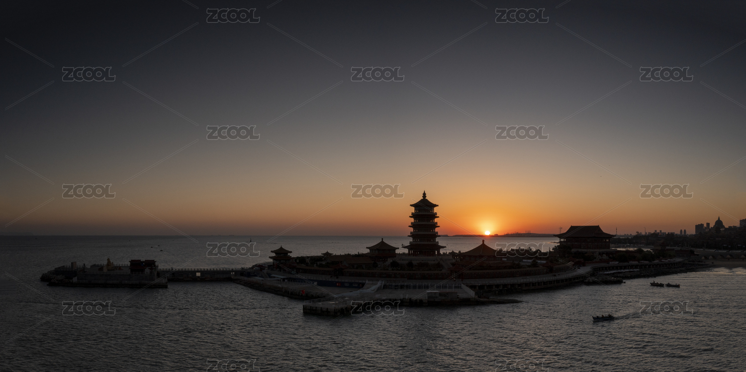 山東省蓬萊閣市黃昏夕陽三仙山自然景觀