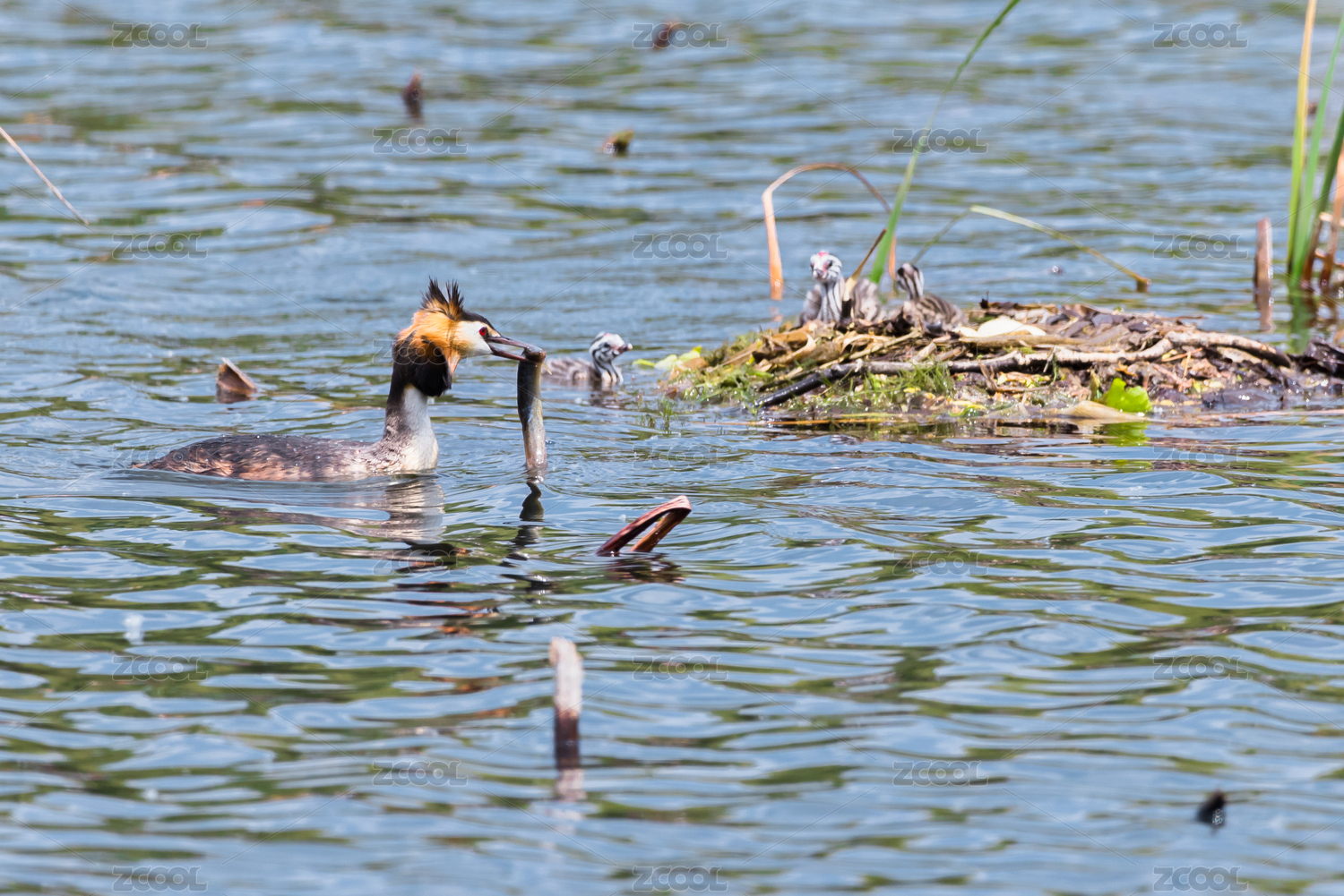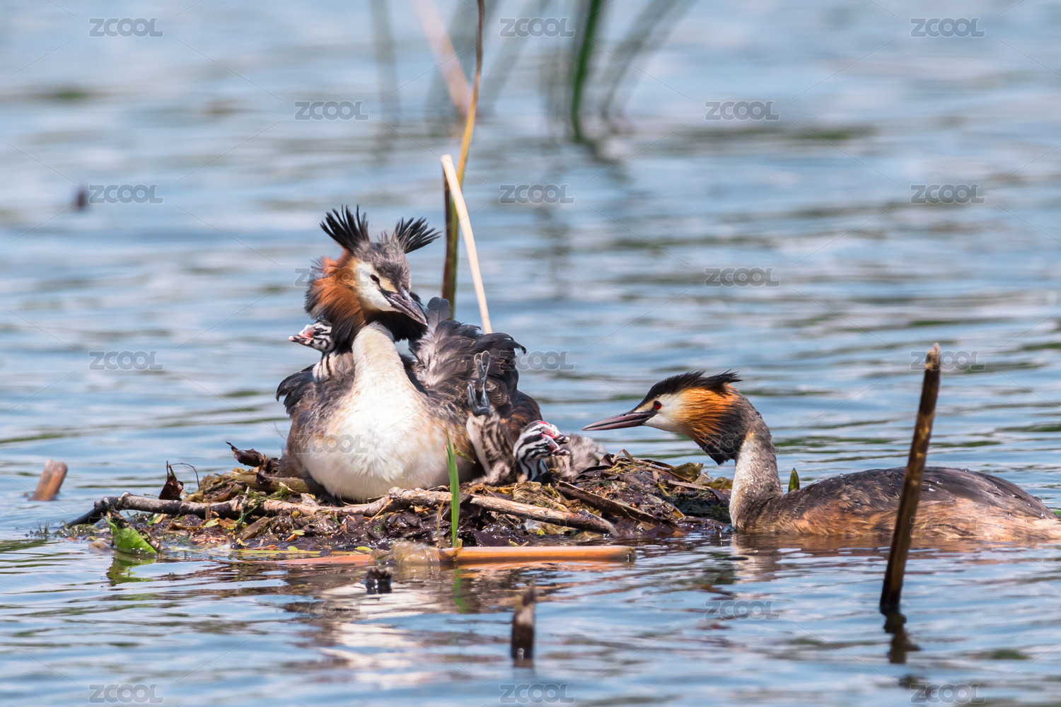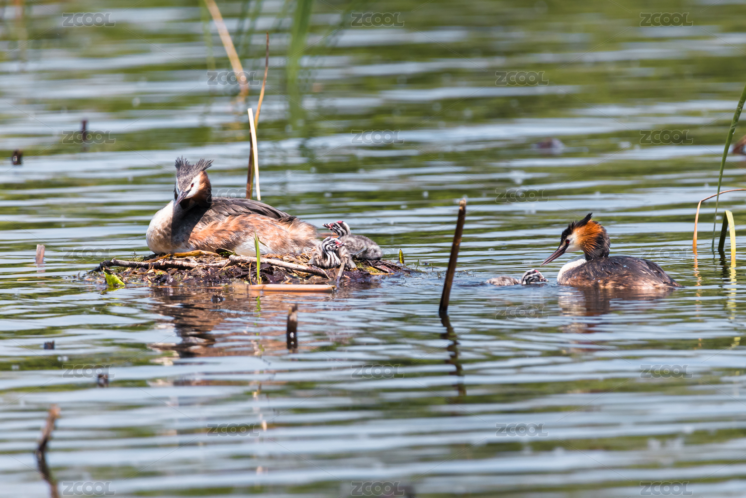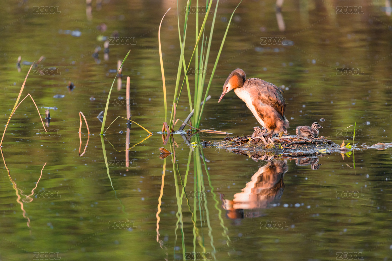 野鴨子水鳥棲息在平靜的湖面上