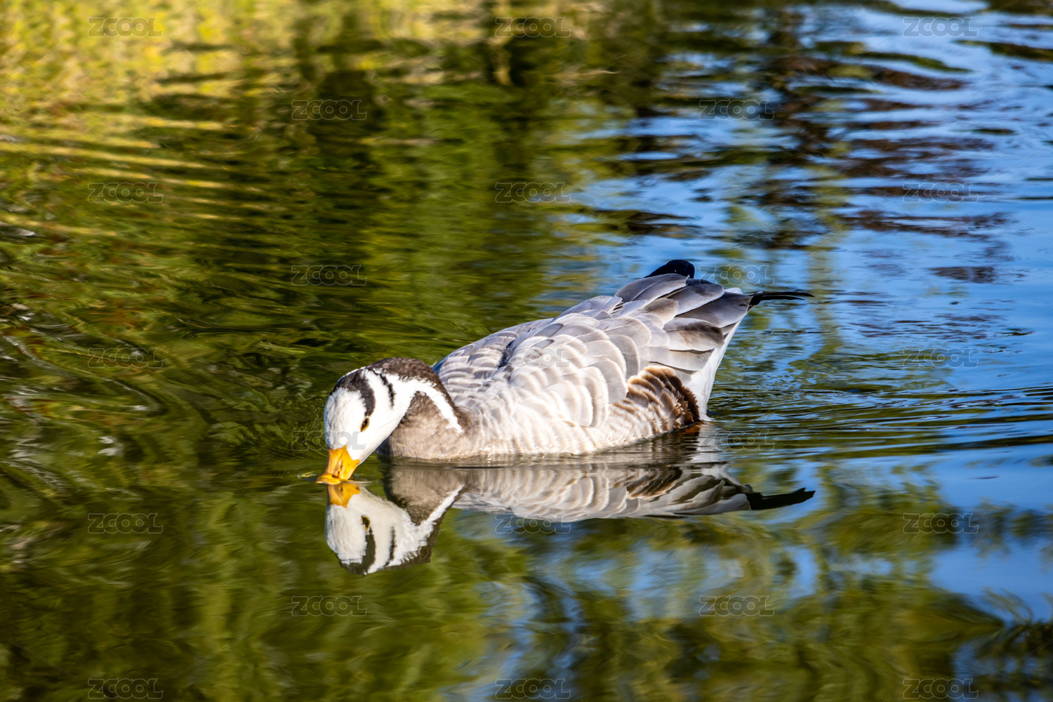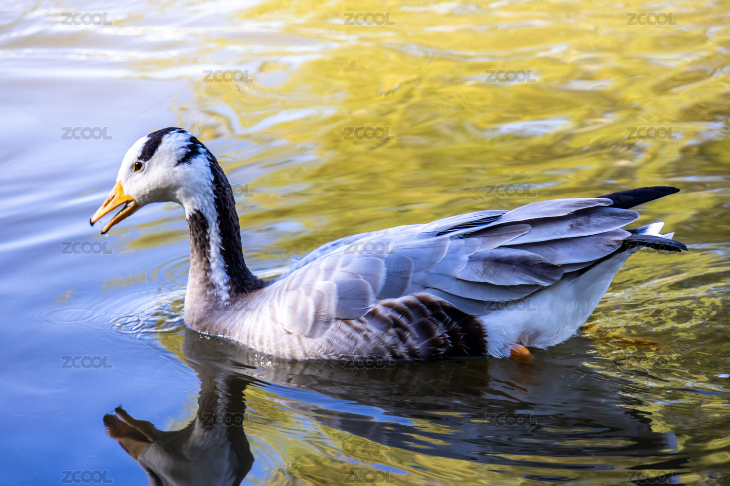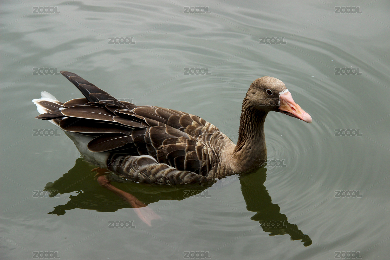 灰雁野鴨子在公園湖水中游動