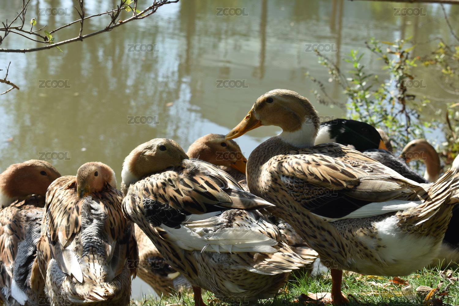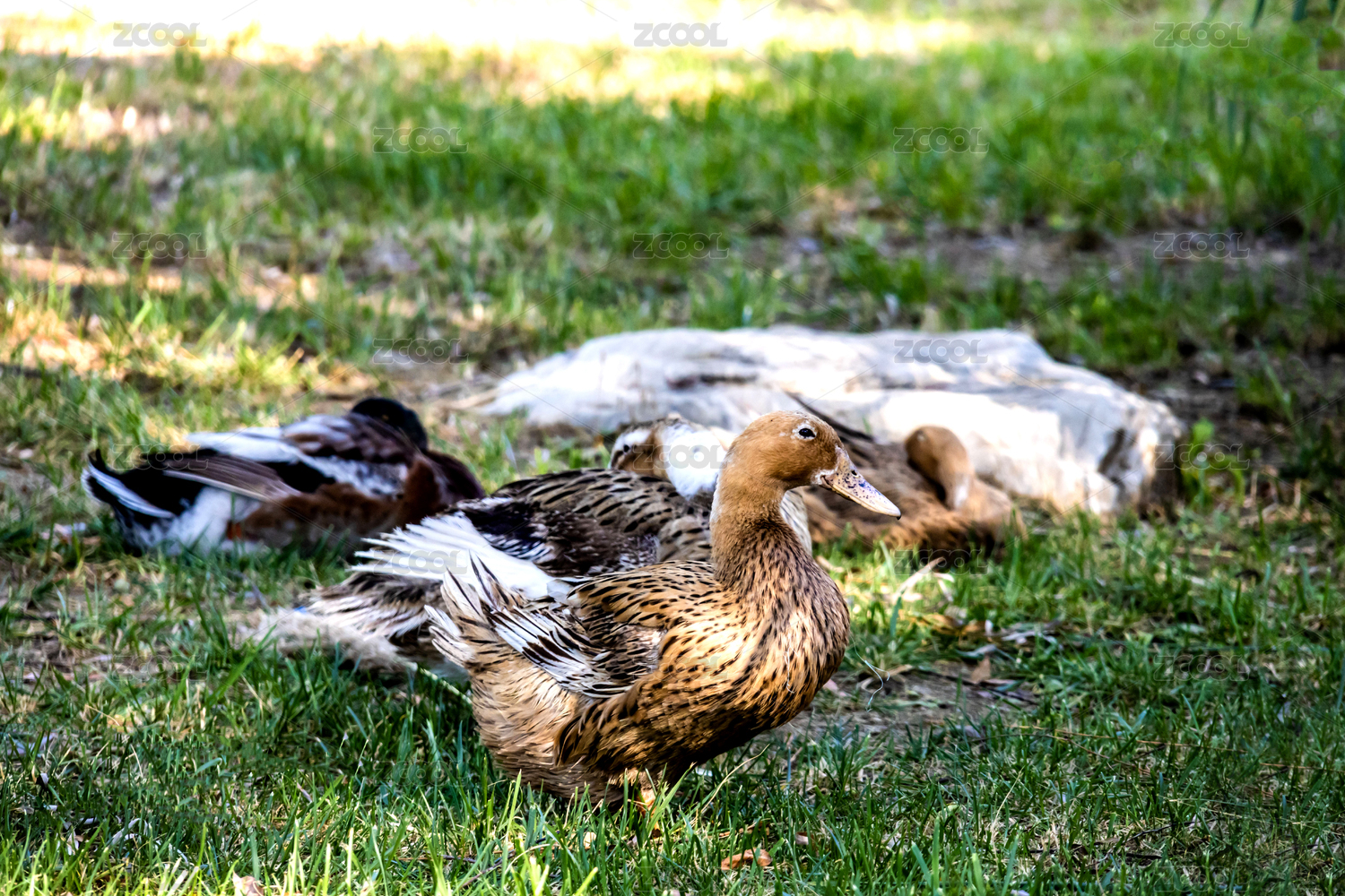 野鴨子在草地上休息