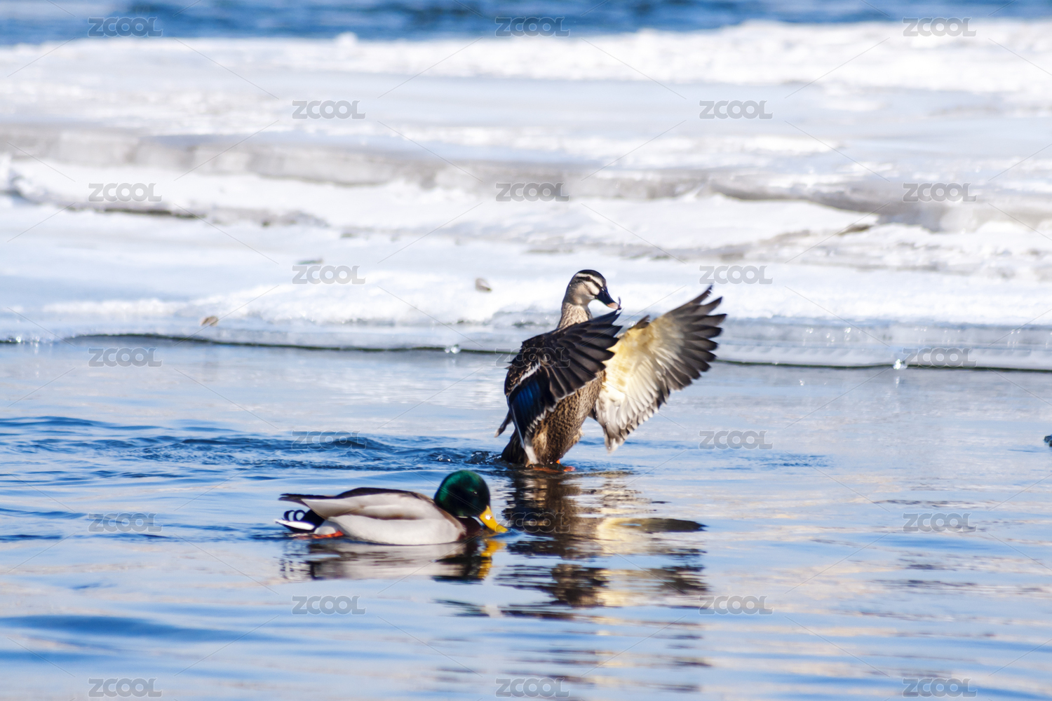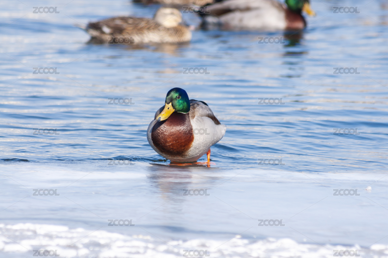一只走上冰面的野鴨子