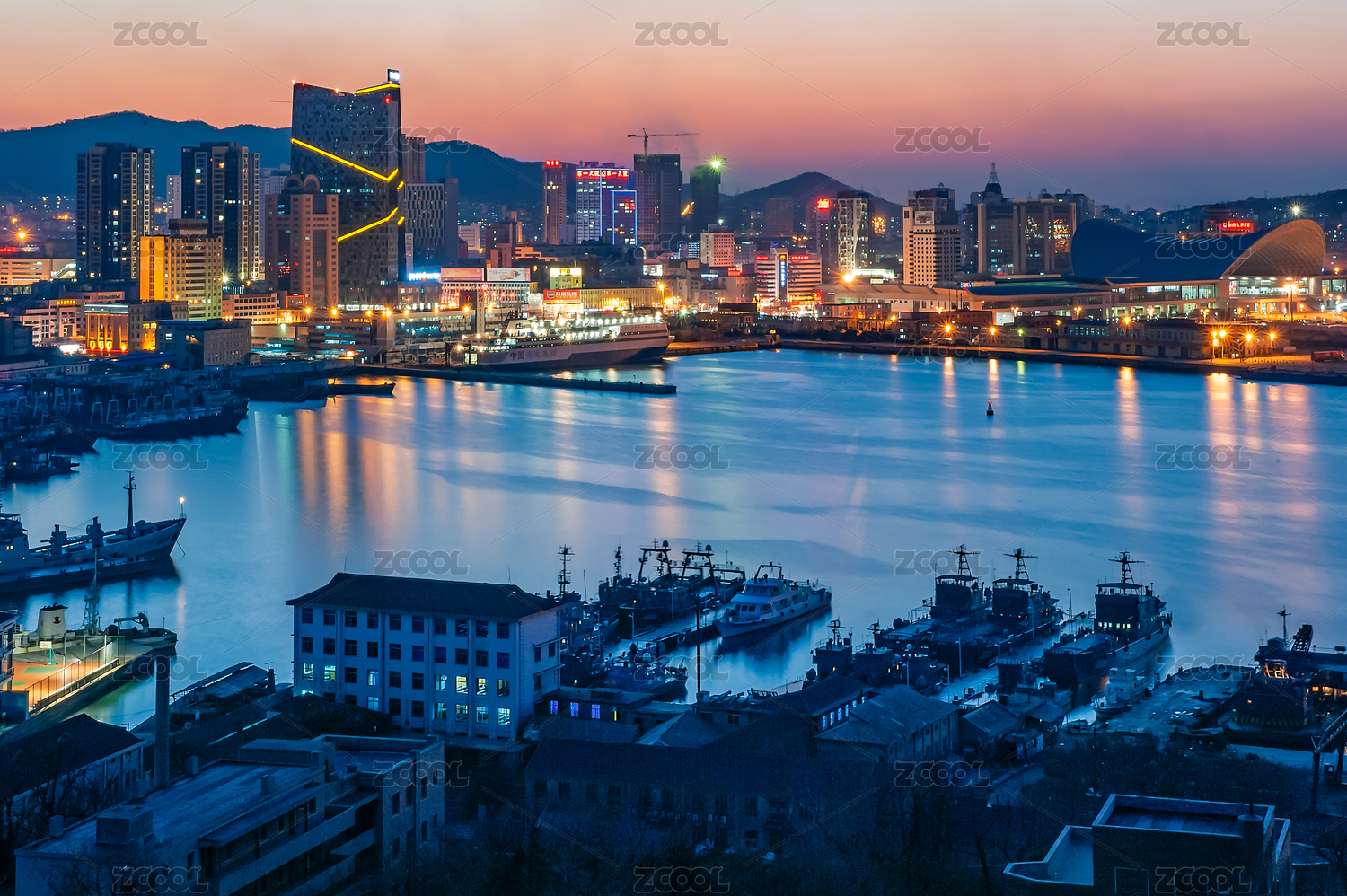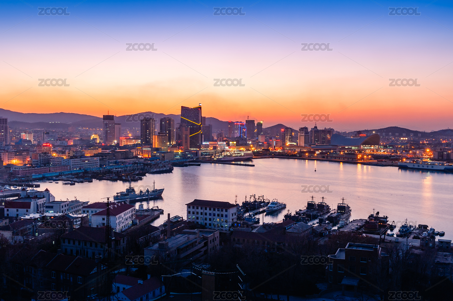 中國山東煙臺港暮色