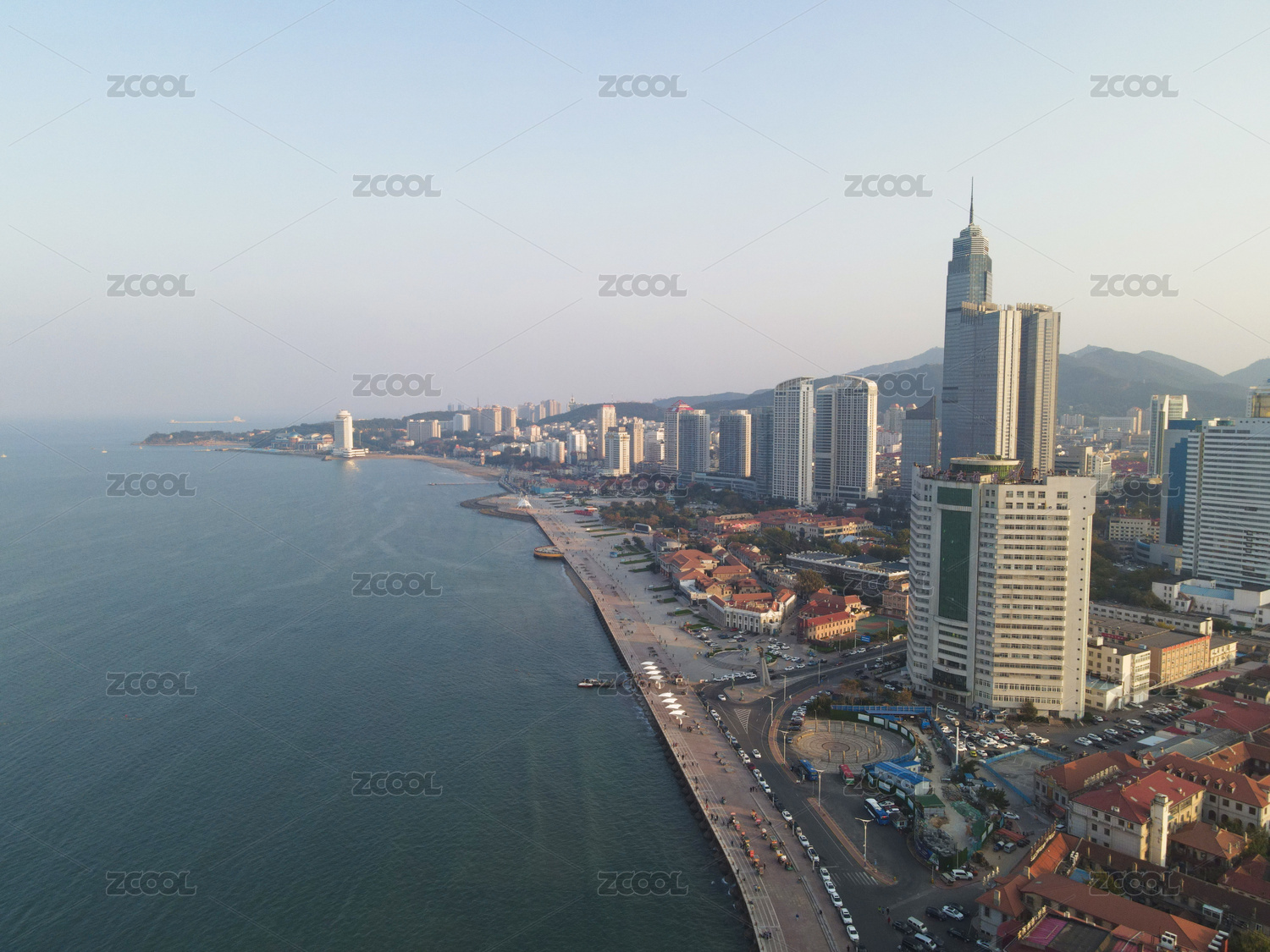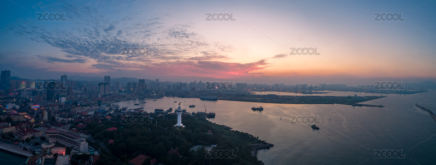 中國山東煙臺海濱暮色航拍