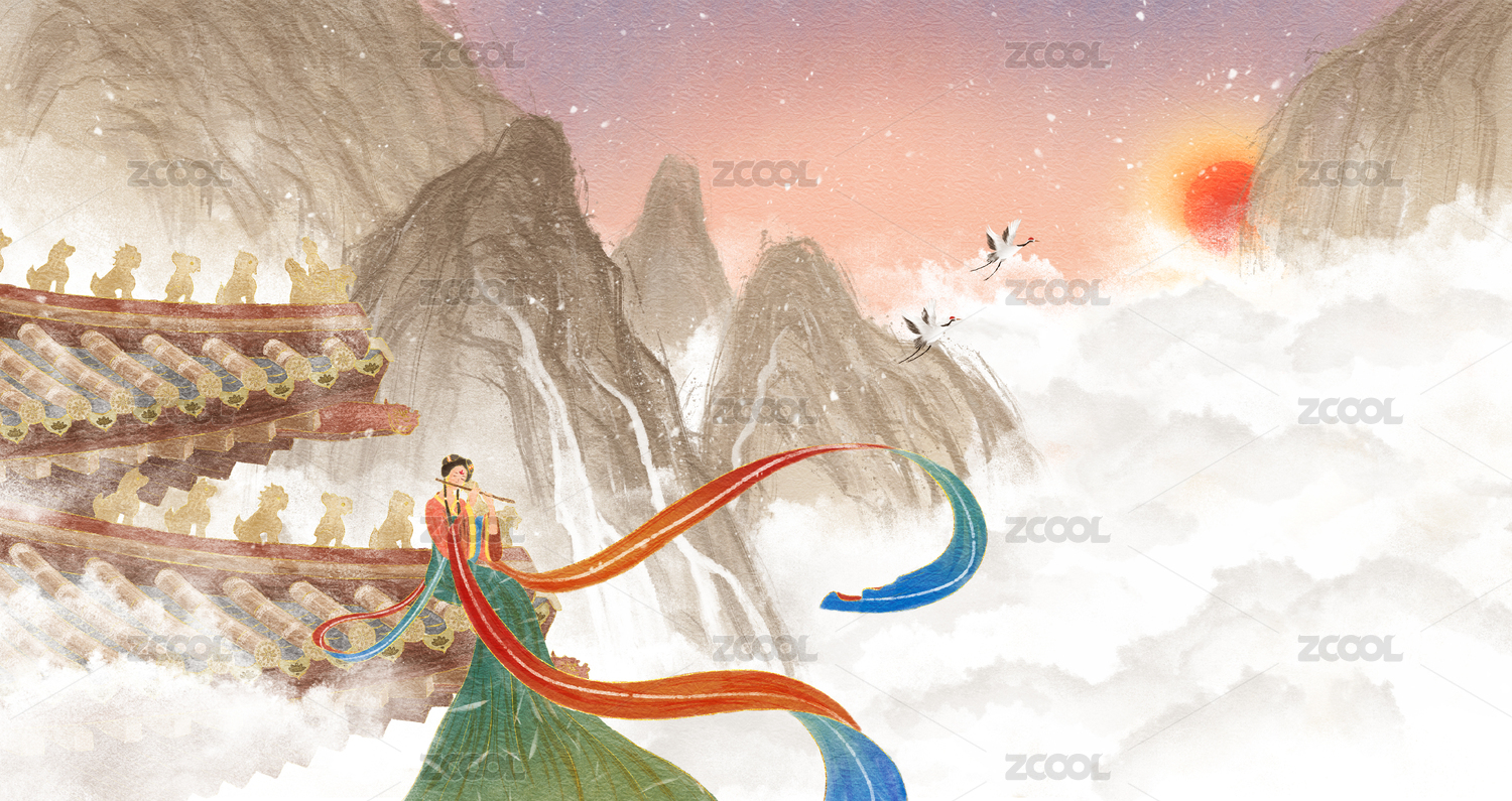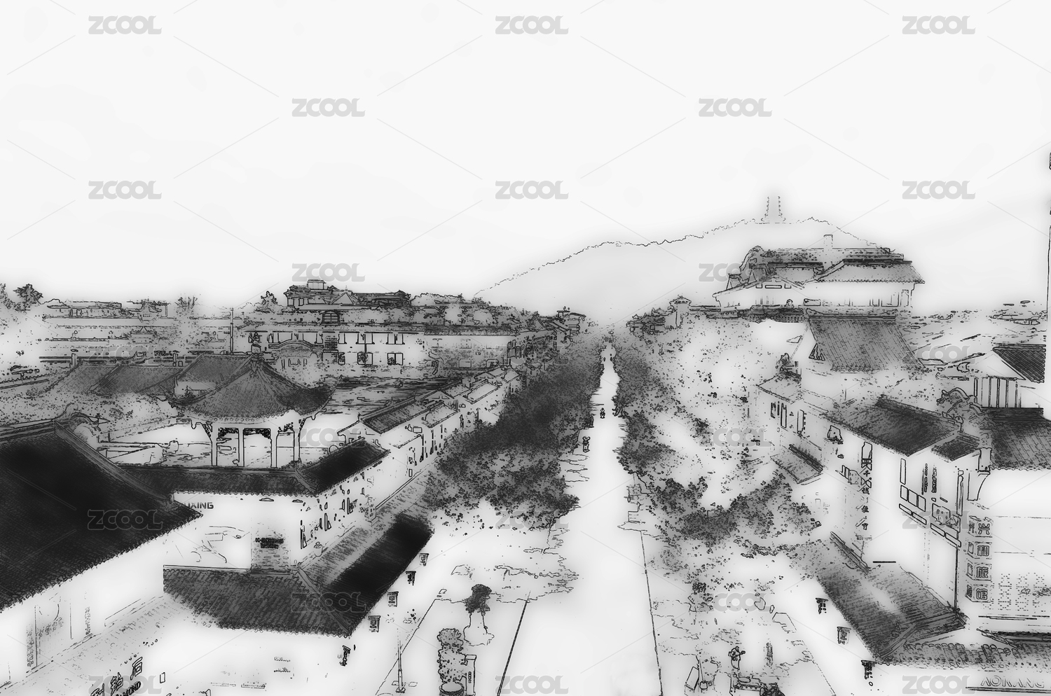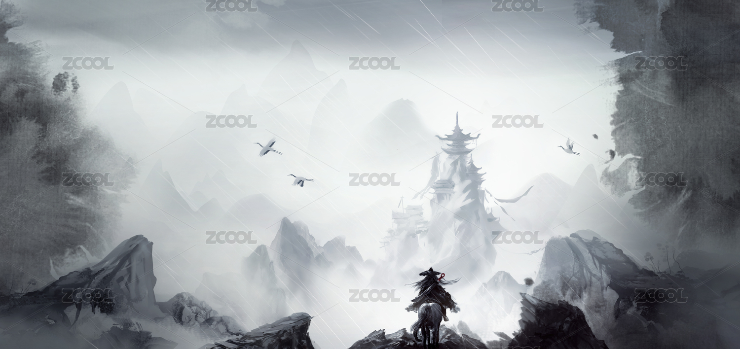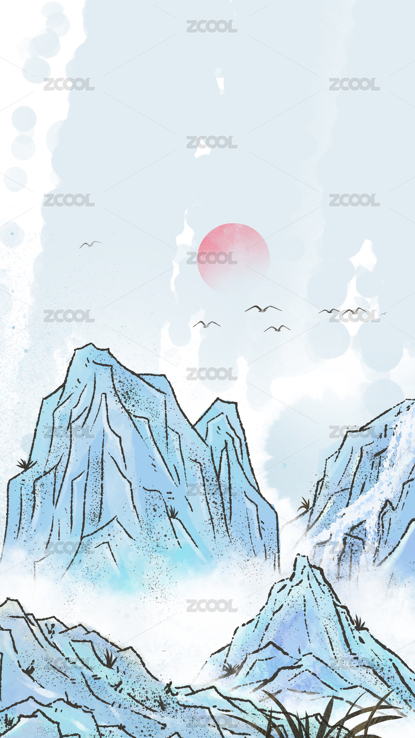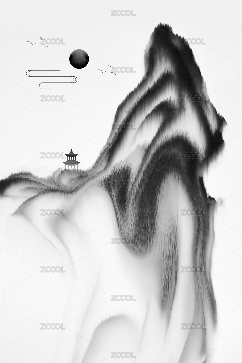中國風(fēng)抽象藝術(shù)中國傳統(tǒng)山峰荒野水墨畫
