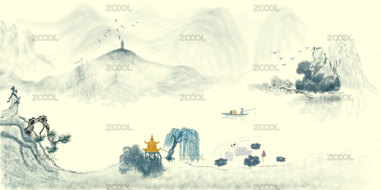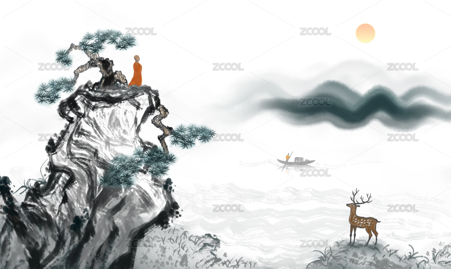 意境悠遠(yuǎn)的禪意墨韻山水水墨畫