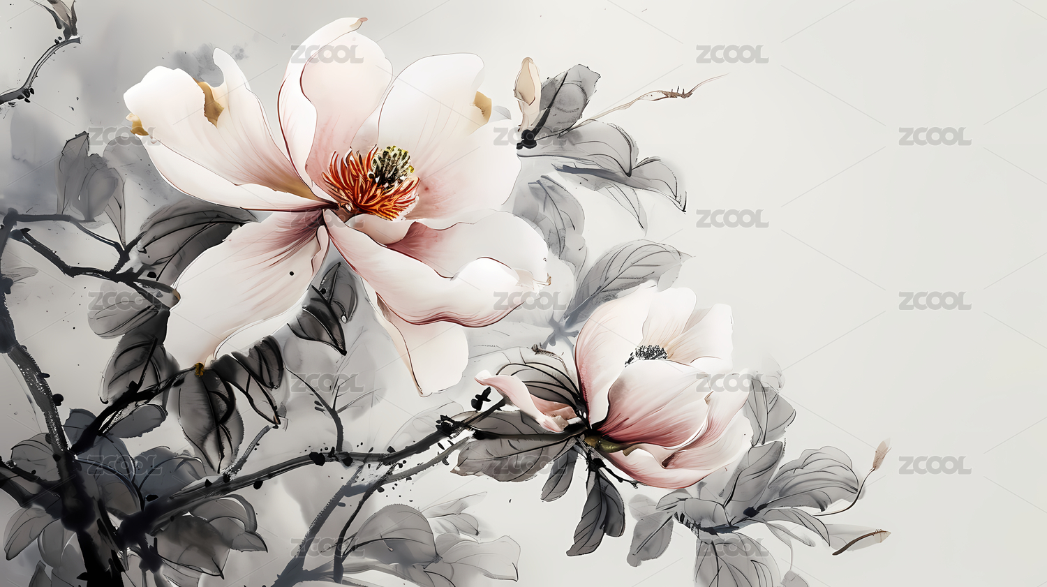 玉蘭花水墨畫國畫抽象背景裝飾畫