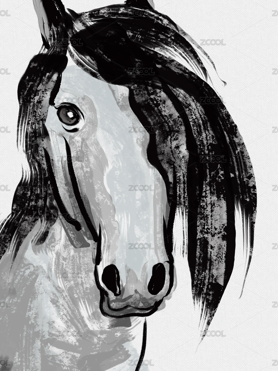 ipad手繪寫意水墨畫駿馬頭部特寫