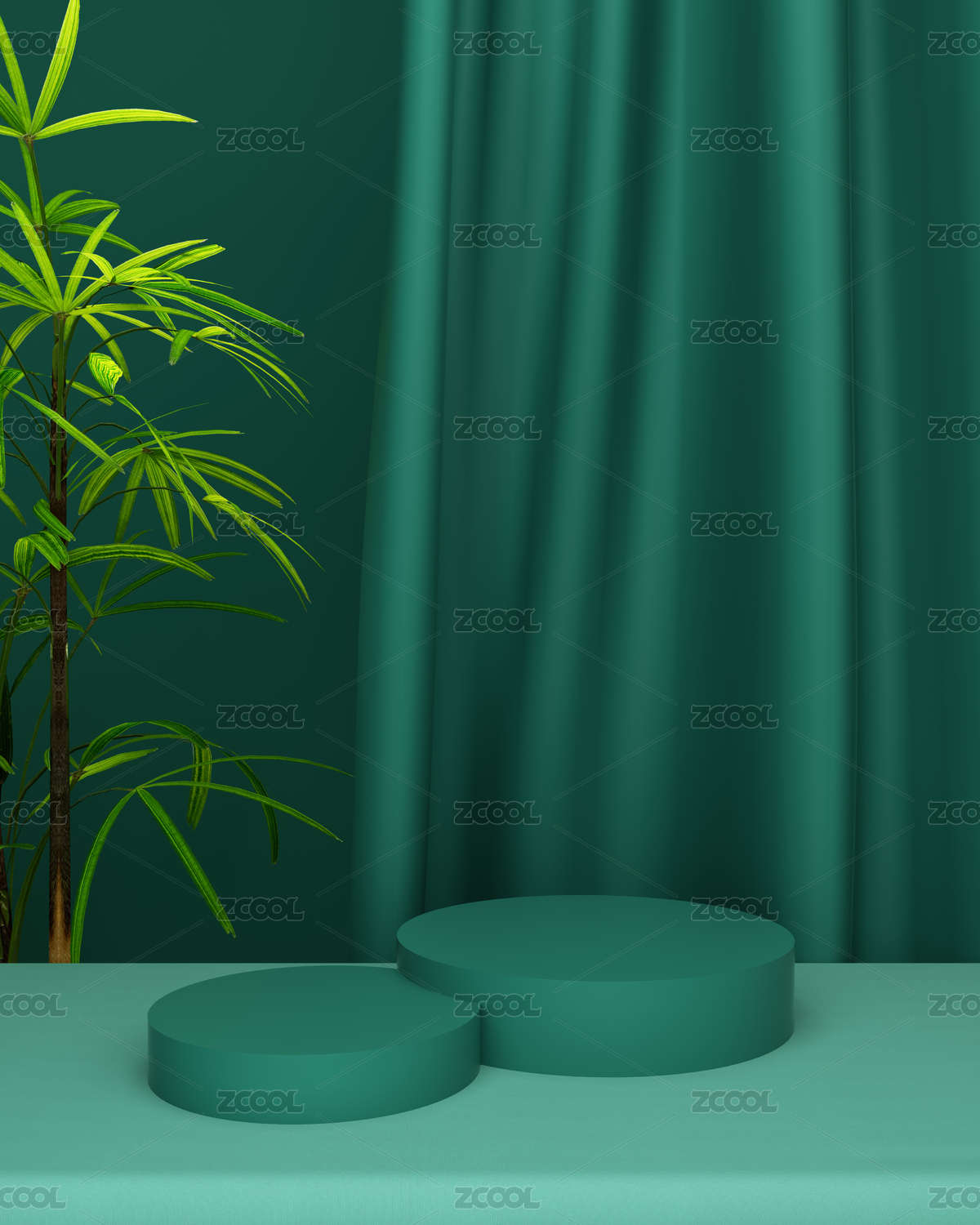 3D模擬場(chǎng)景綠色產(chǎn)品展示臺(tái),綠色自然背景