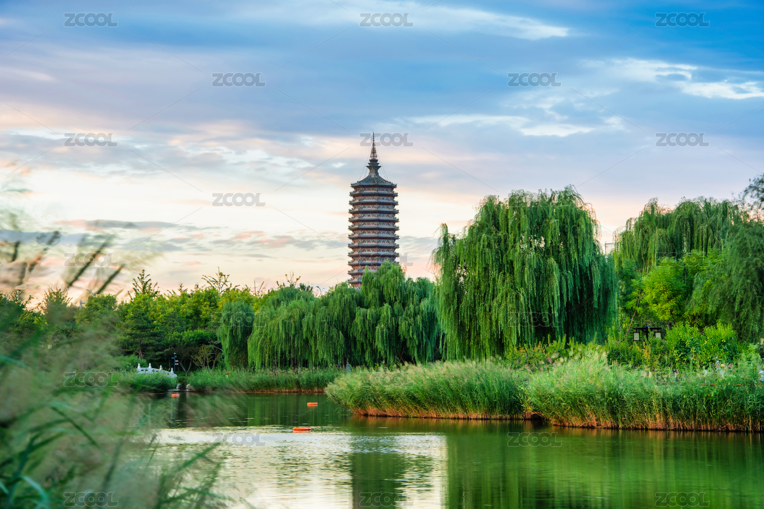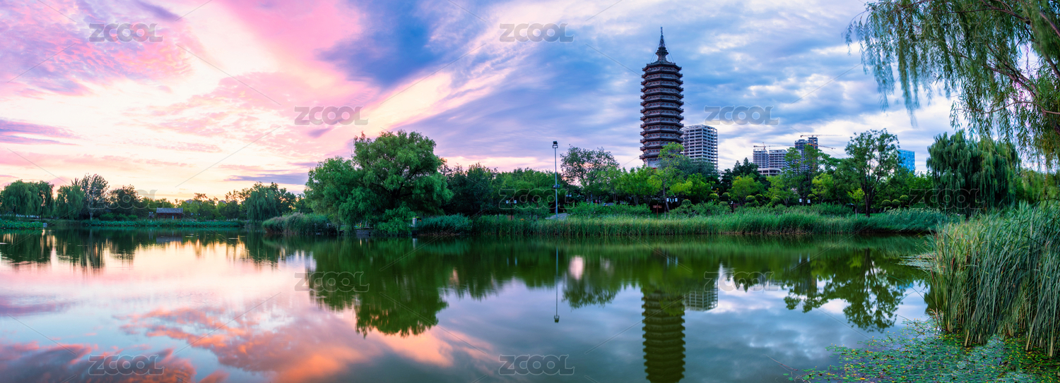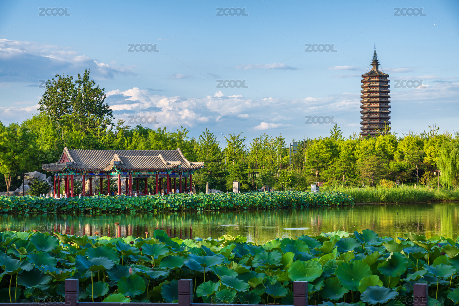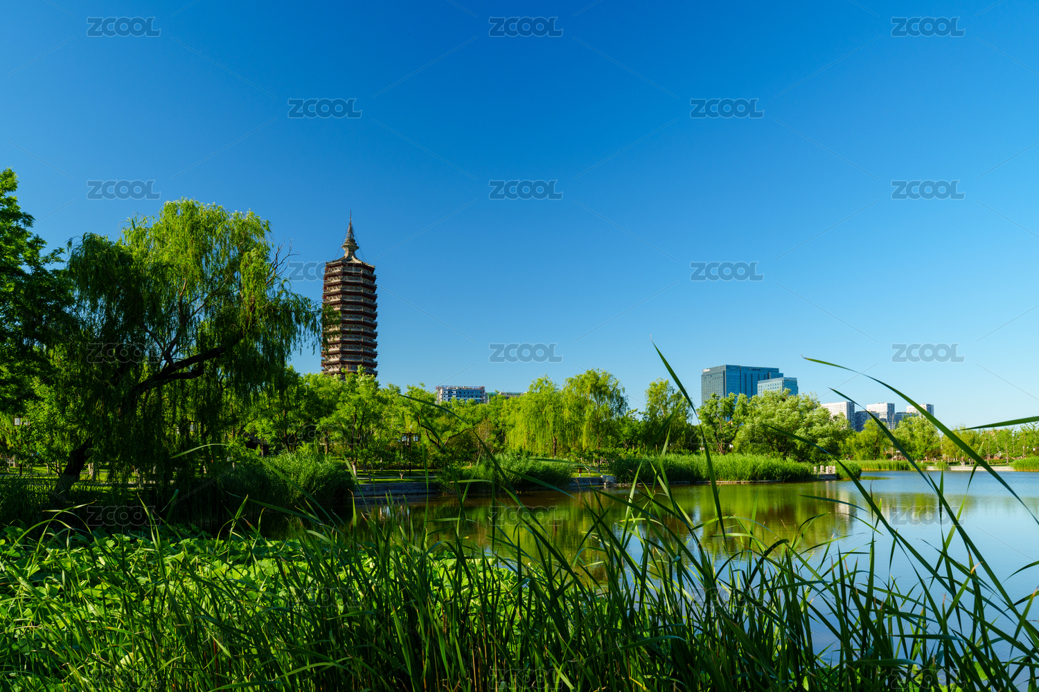 北京通州區(qū)西海子公園水榭亭臺與燃燈塔