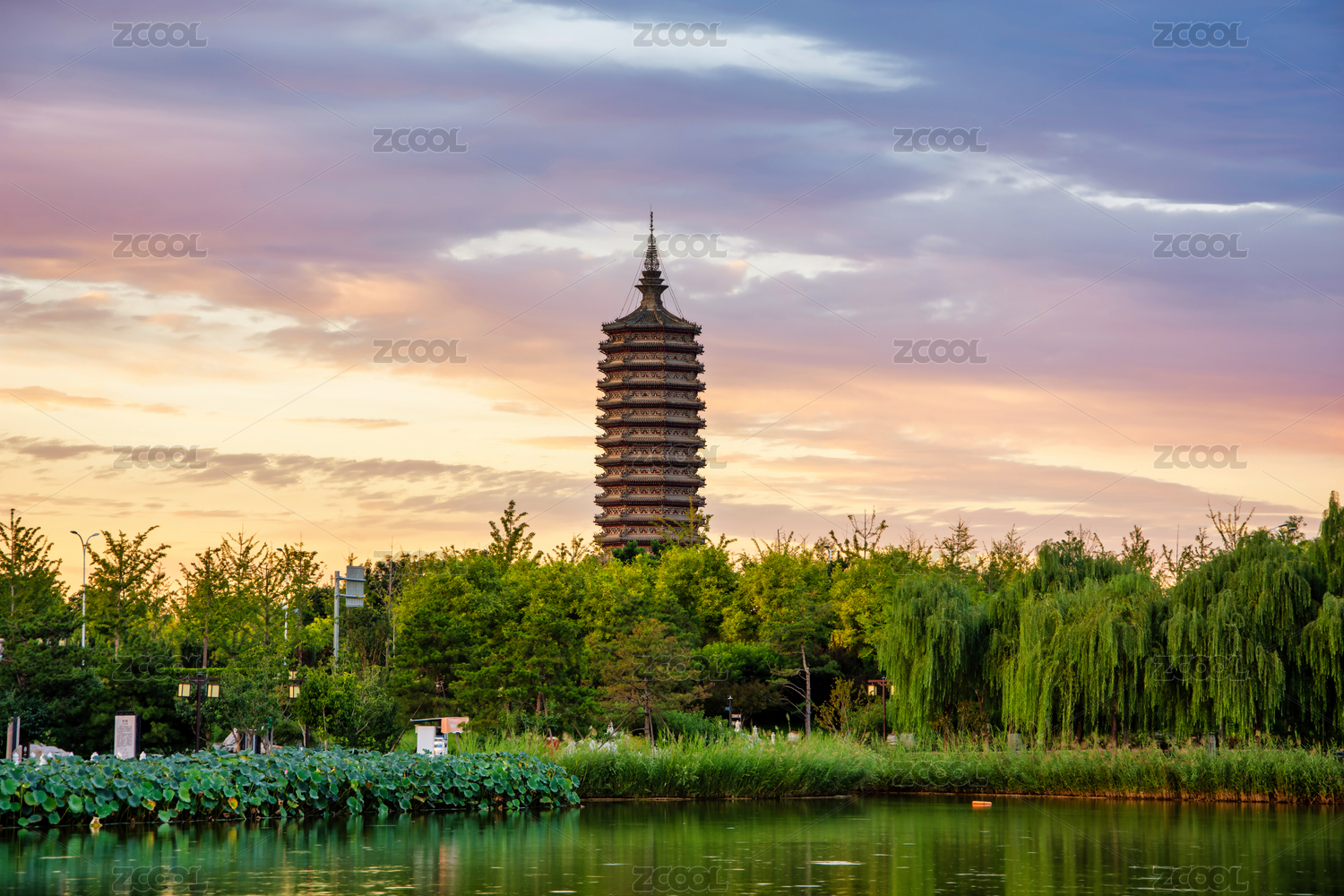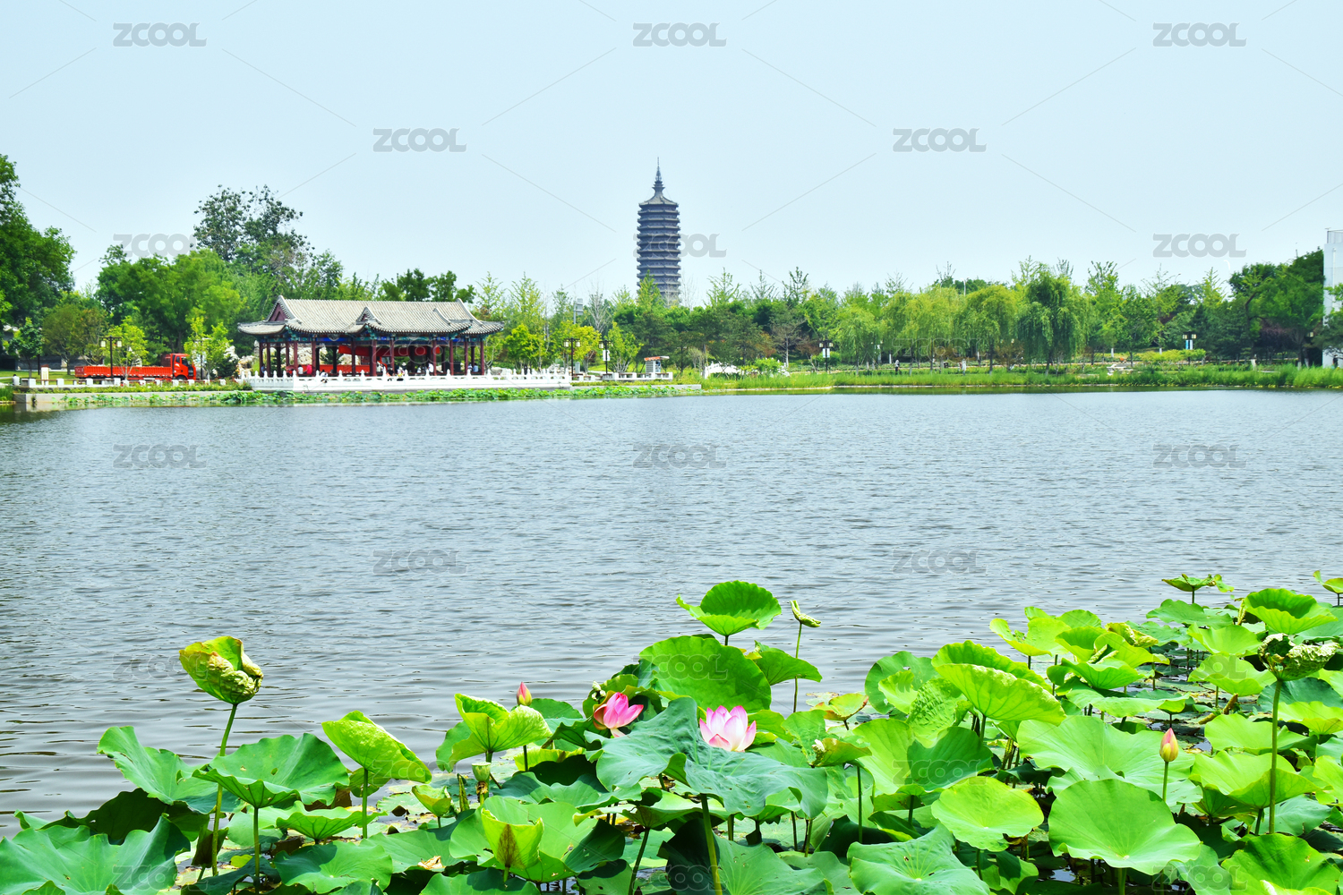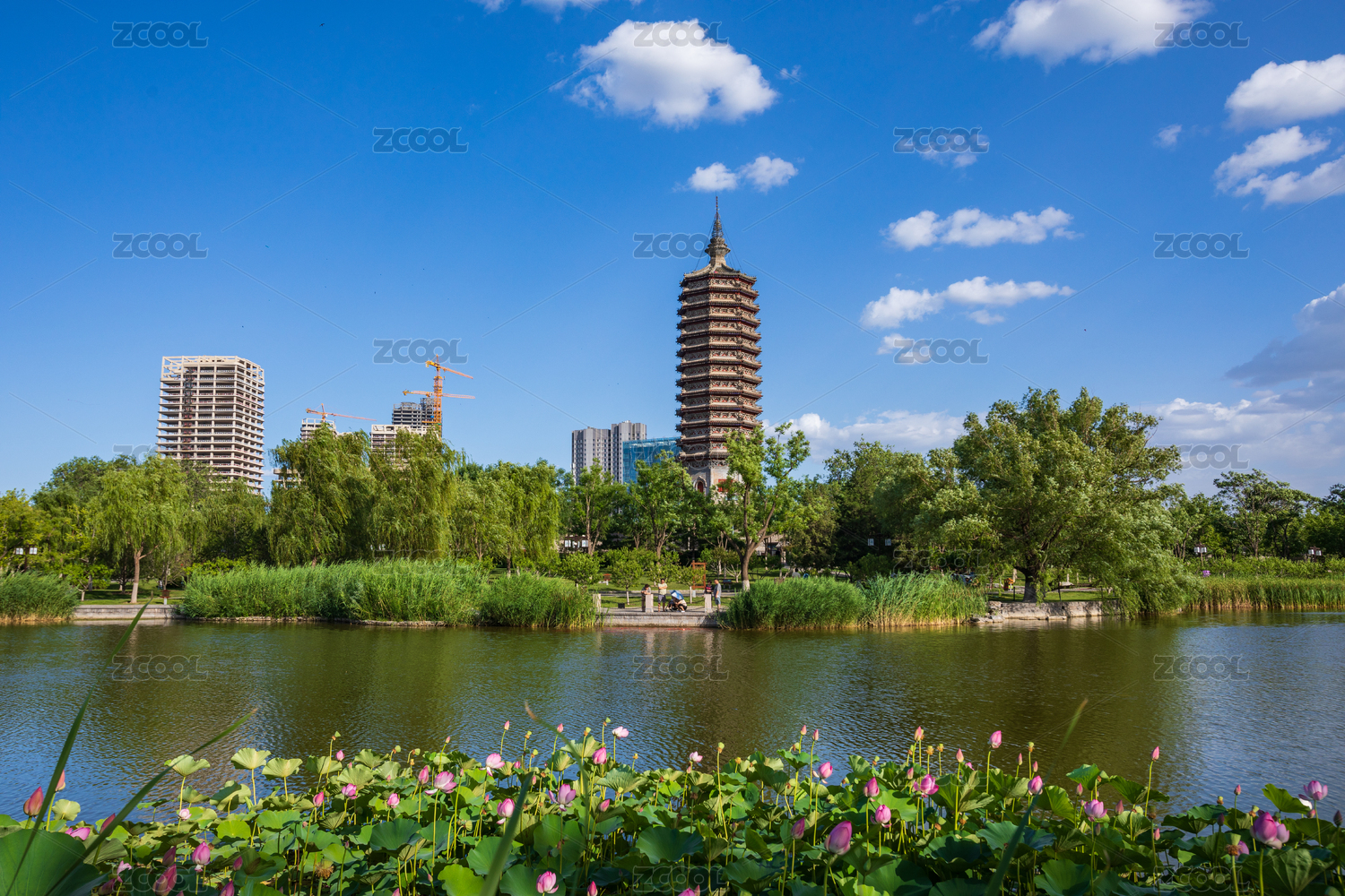 北京通州區(qū)西海子公園水榭亭臺與燃燈塔