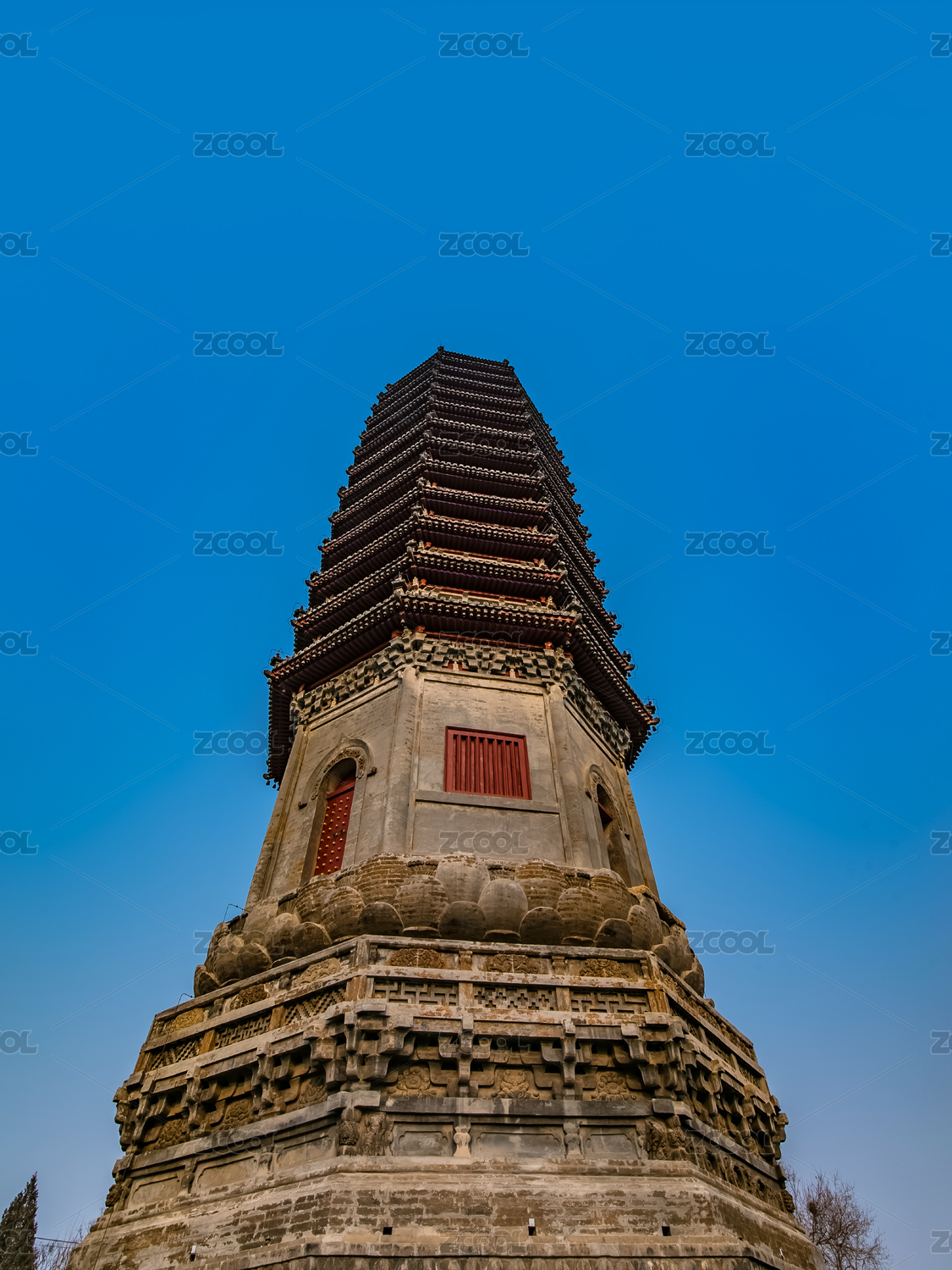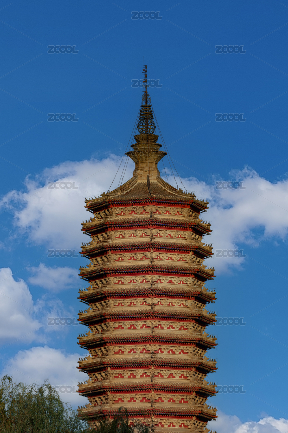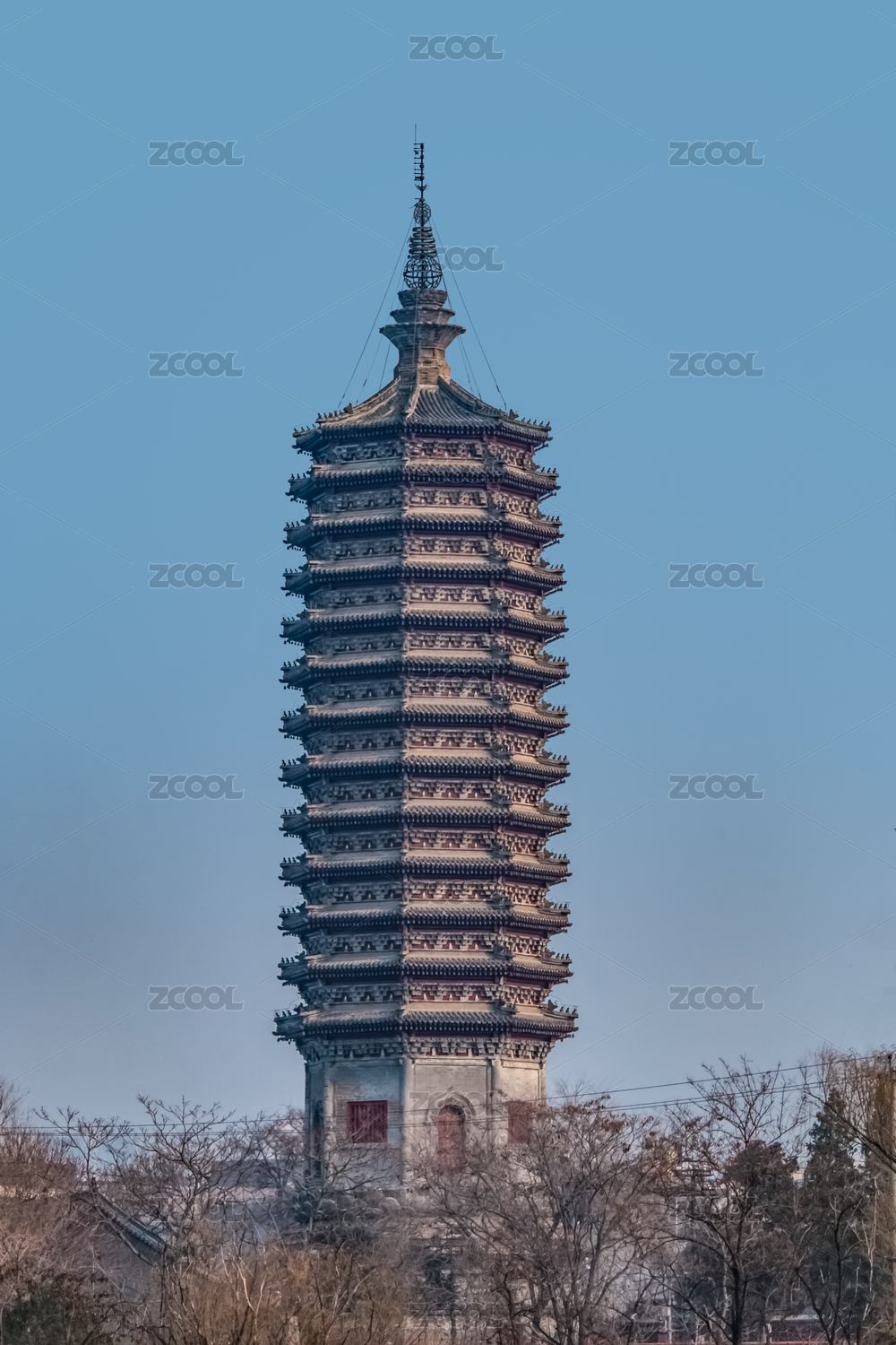 通州三教廟殿宇屋檐與燃燈塔藍天下的構(gòu)圖