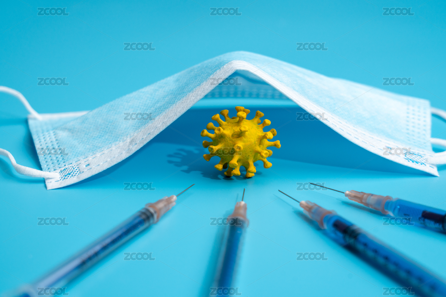病毒口罩和注射器創(chuàng)意靜物