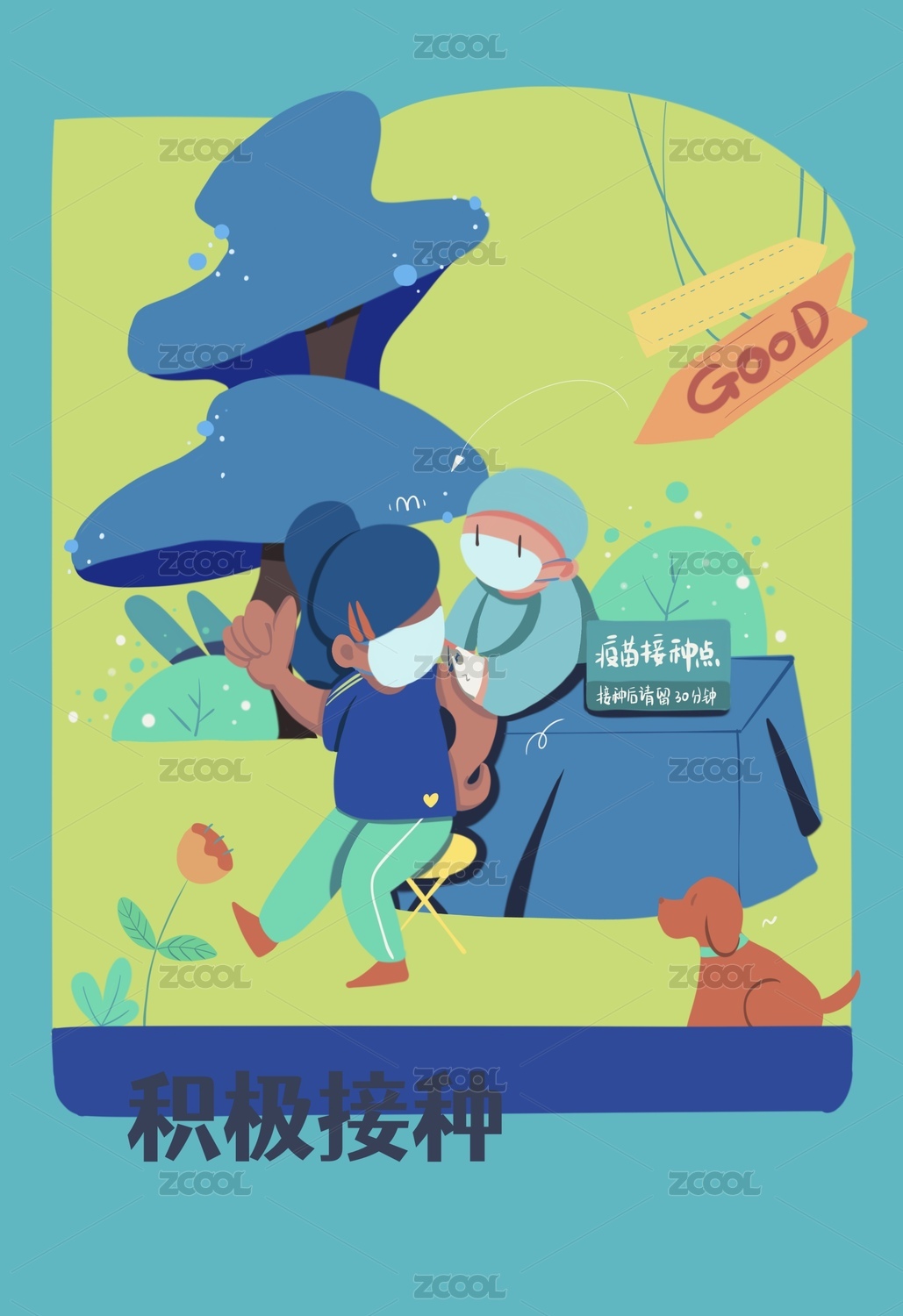 醫(yī)護(hù)人員正在給民眾接種新冠疫苗插畫海報(bào)