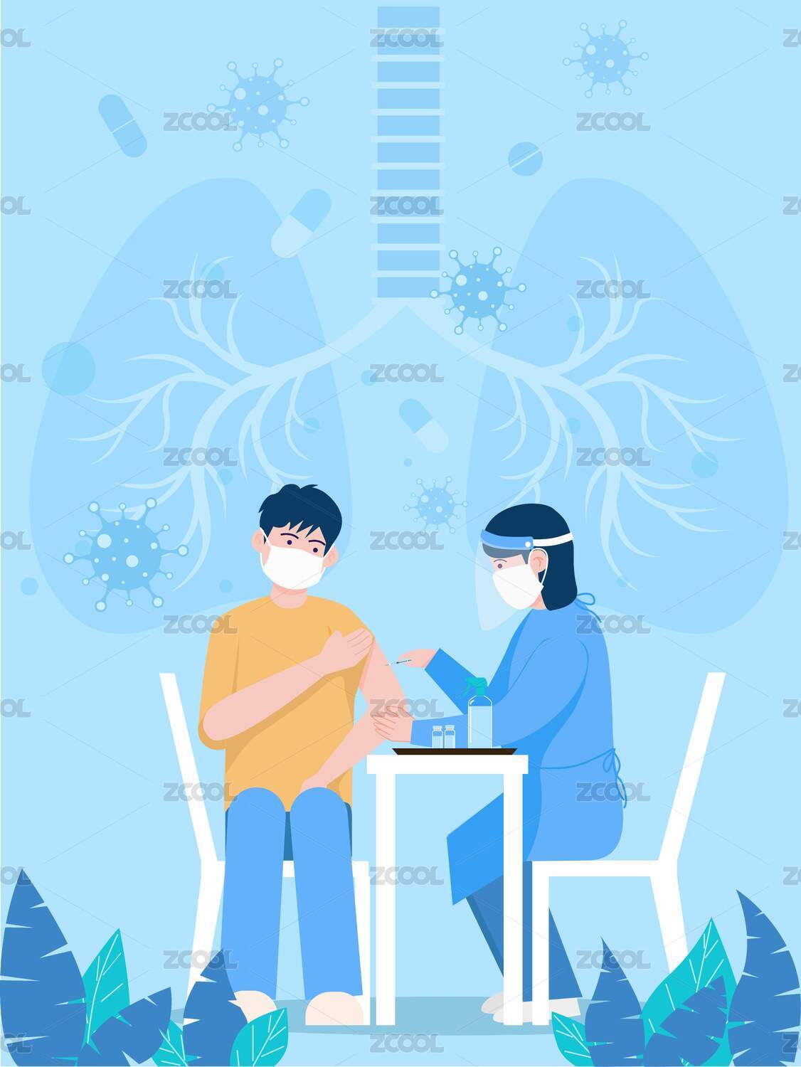 疫苗接種醫(yī)生護(hù)士宣傳指引醫(yī)療插畫背景