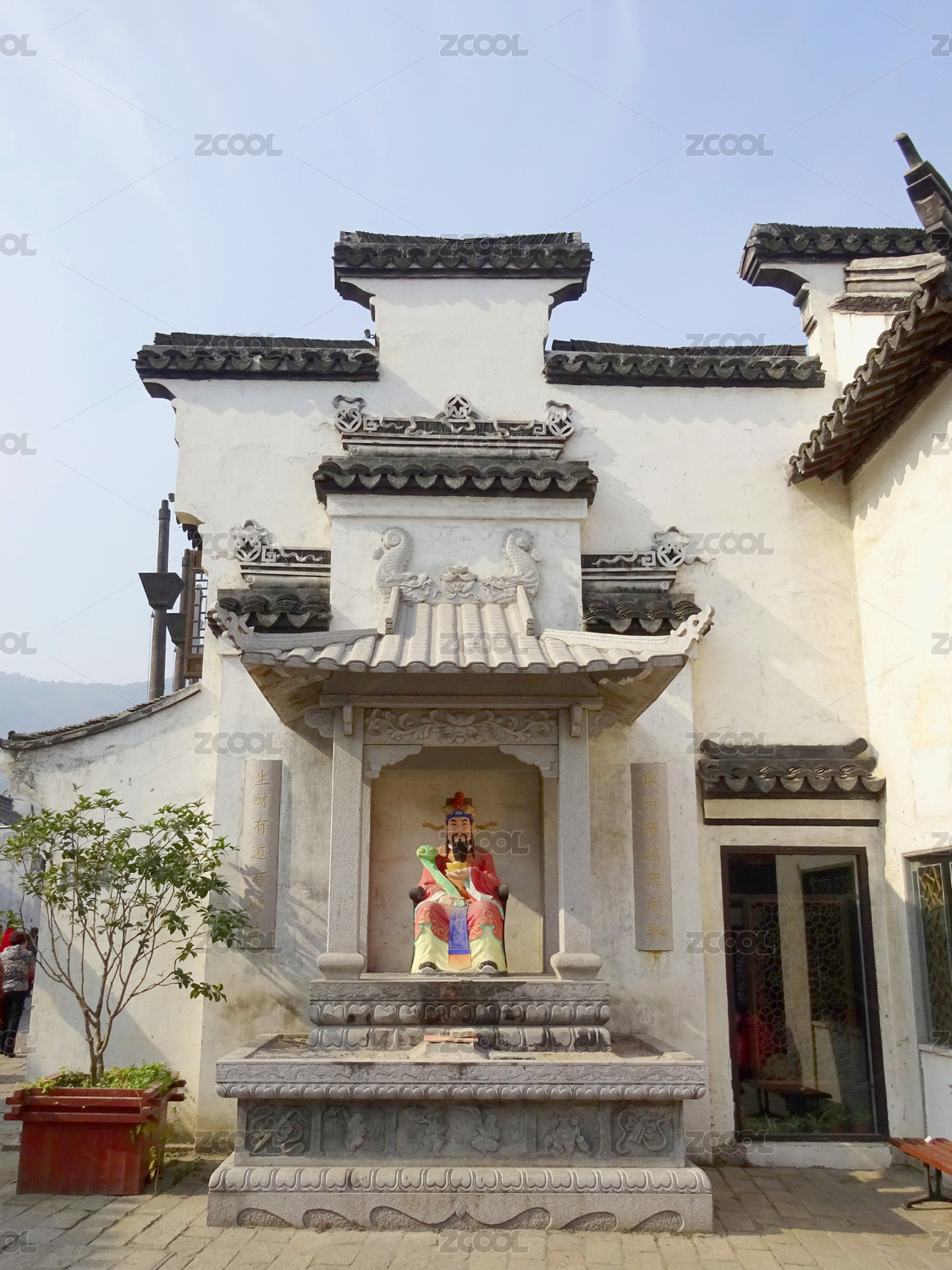 中國江蘇無錫惠山古鎮(zhèn)徽派建筑及財(cái)神神龕