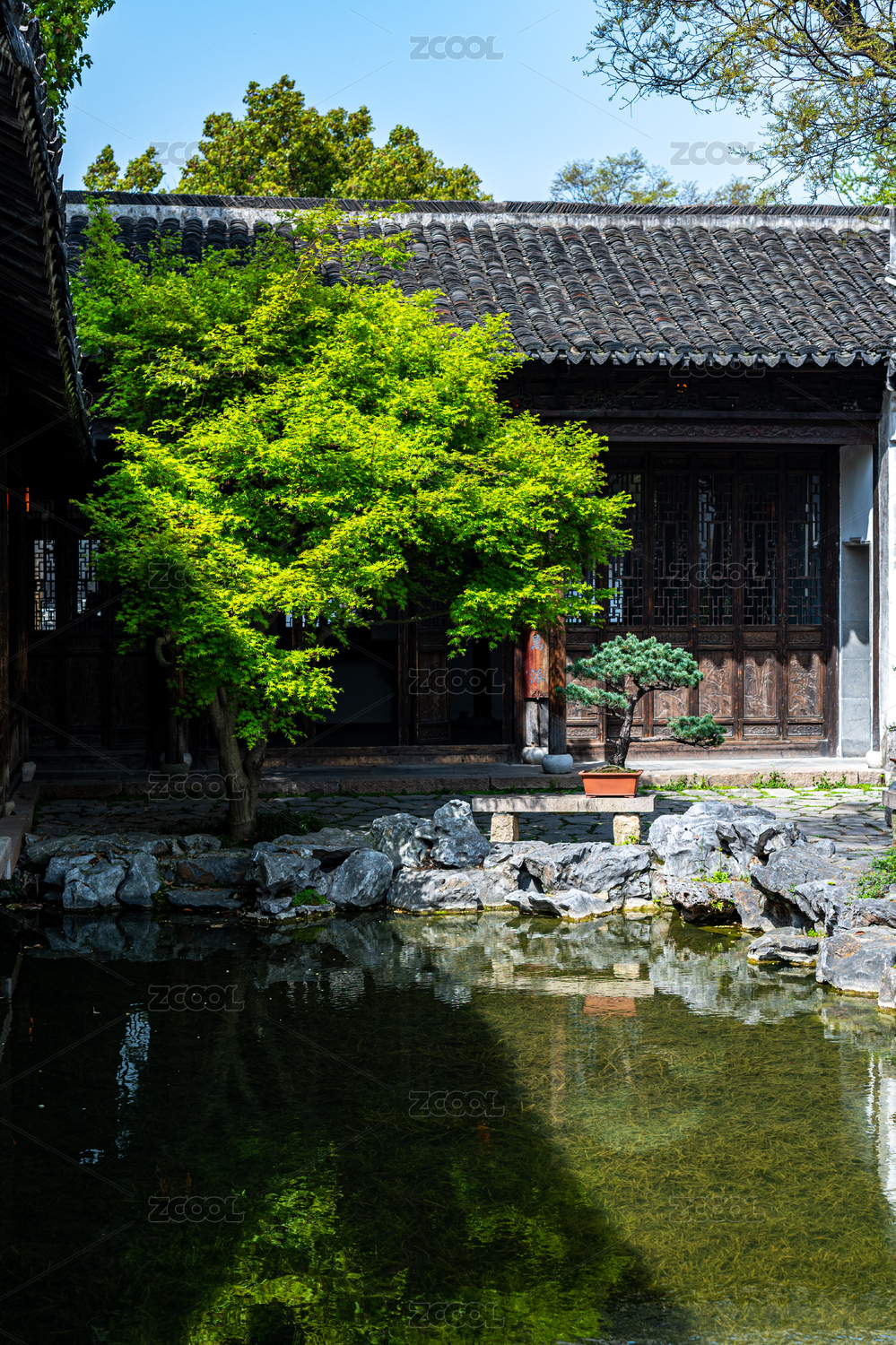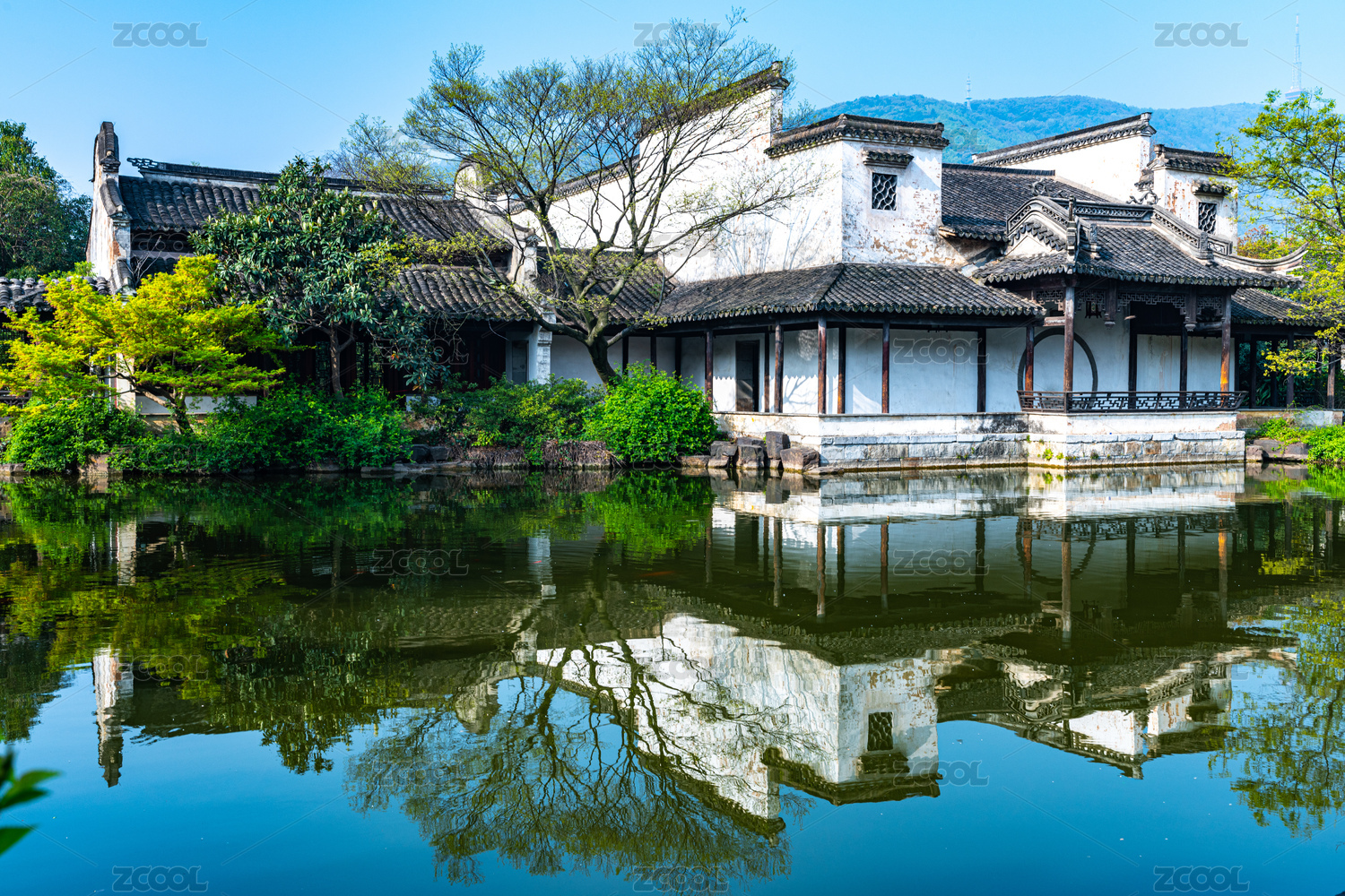 無錫惠山古鎮(zhèn)寄暢園池塘園林建筑景觀
