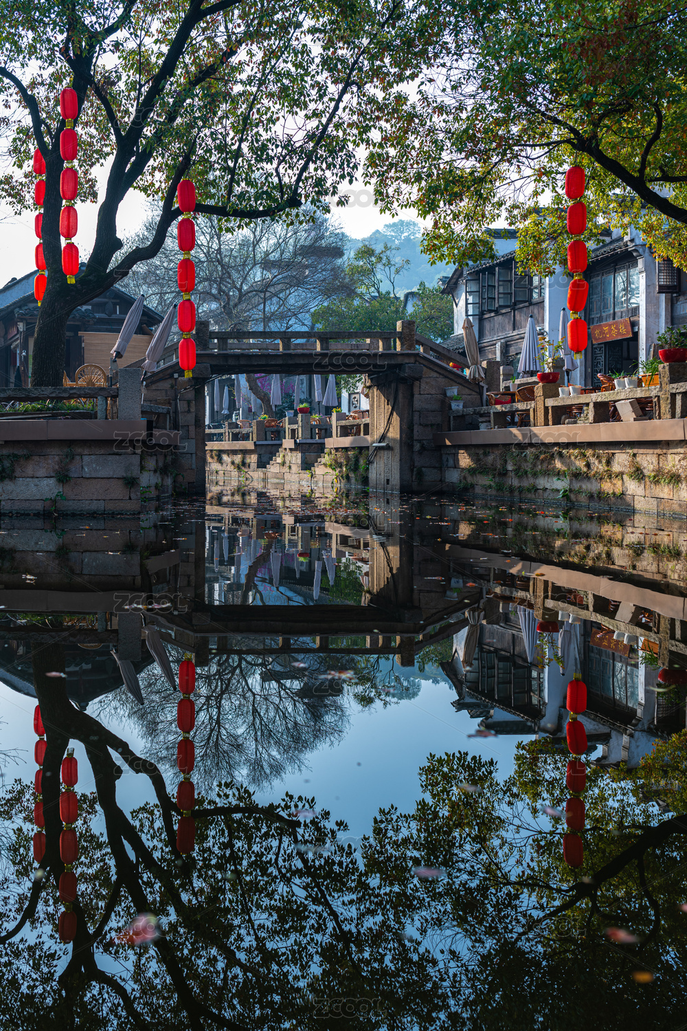 中國江蘇無錫惠山古鎮(zhèn)春色倒影