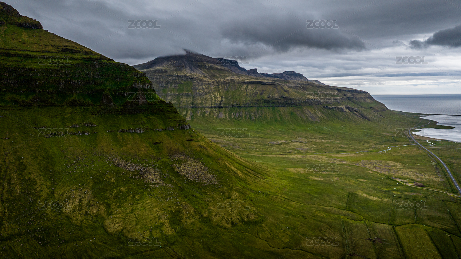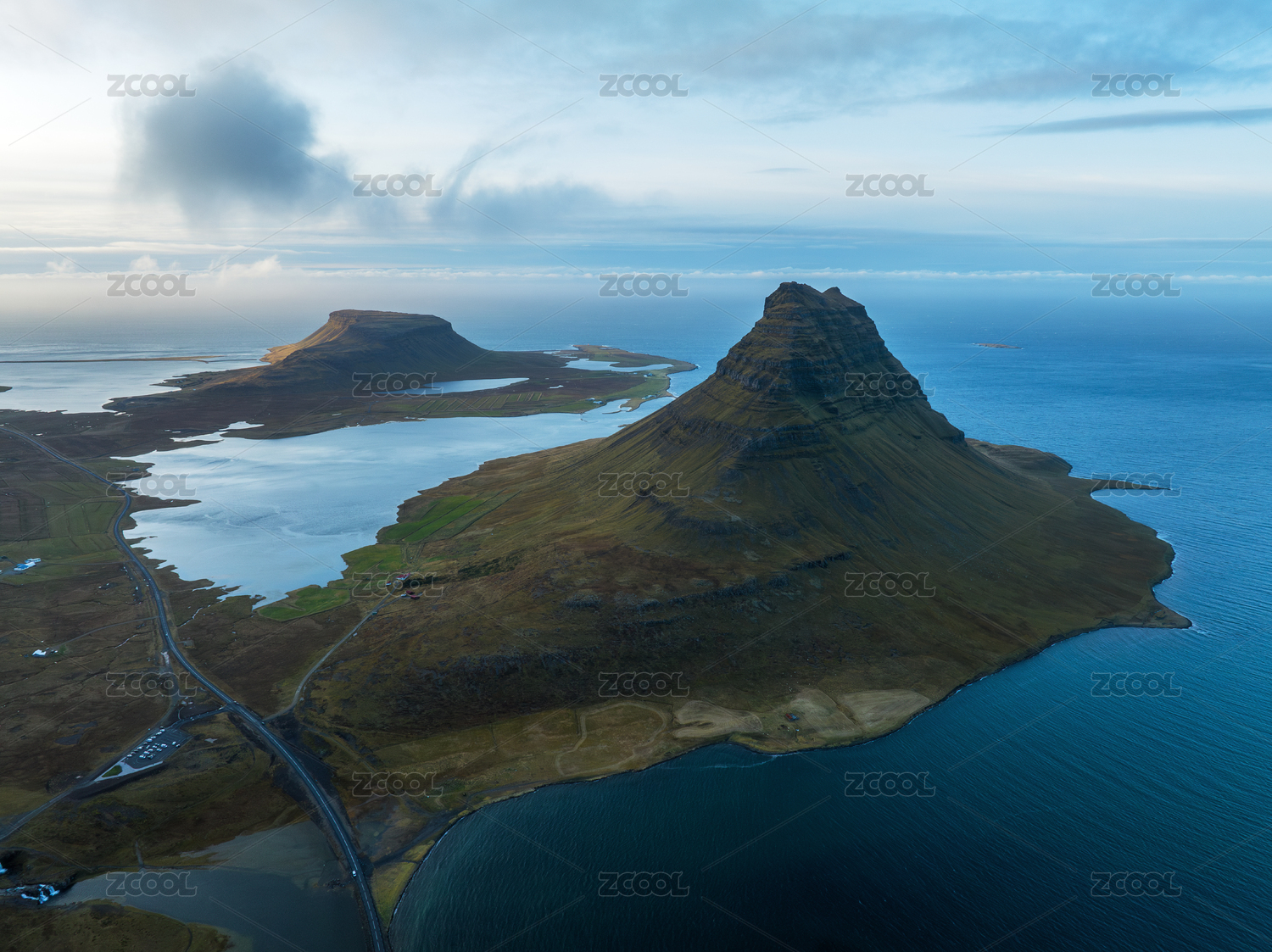 冰島斯奈山半島草帽山日落藍(lán)調(diào)高空航拍