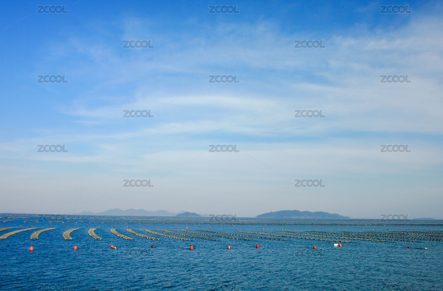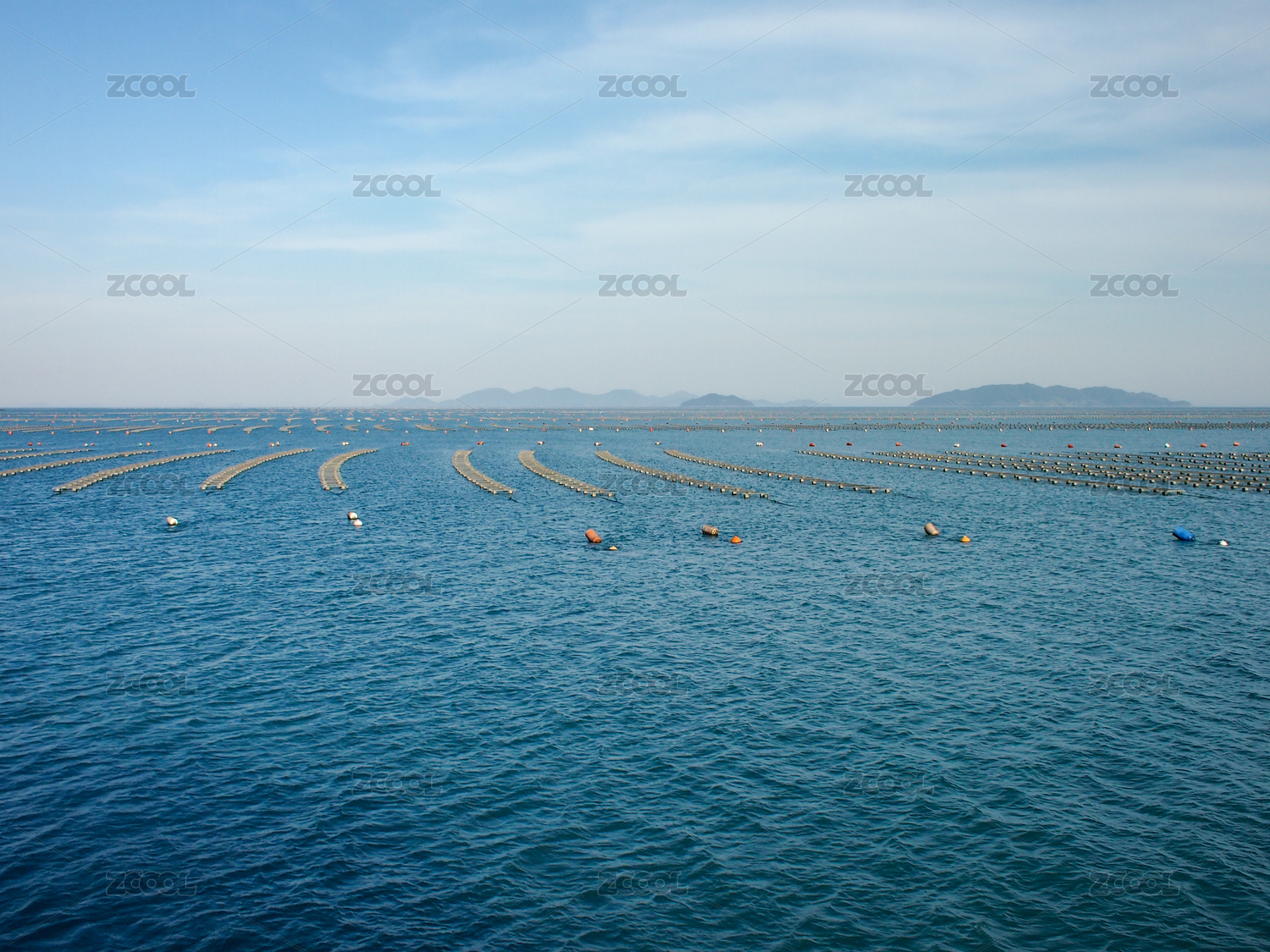 韓國全羅南道莞島郡的大海與海上養(yǎng)殖場