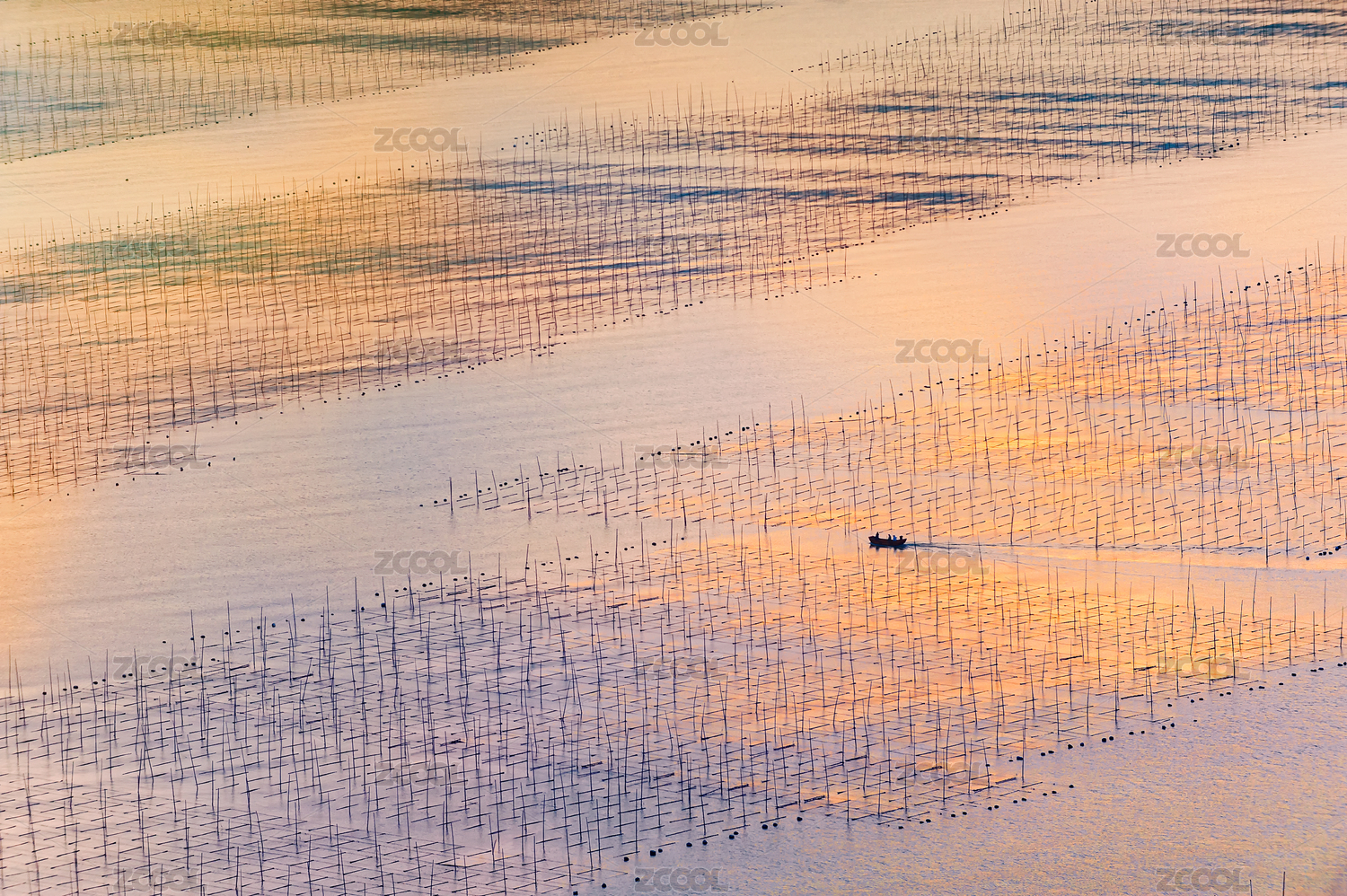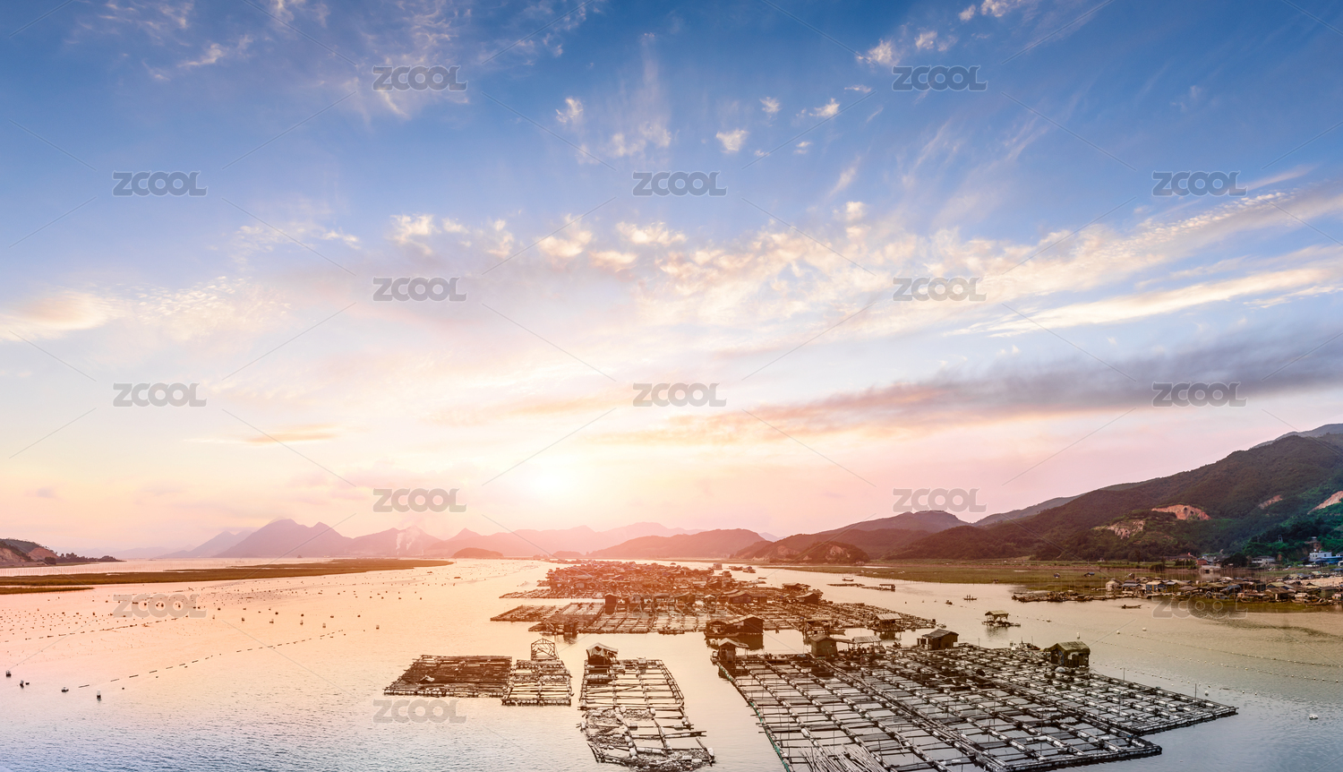 大連小長山島海上養(yǎng)殖場傍晚風(fēng)光