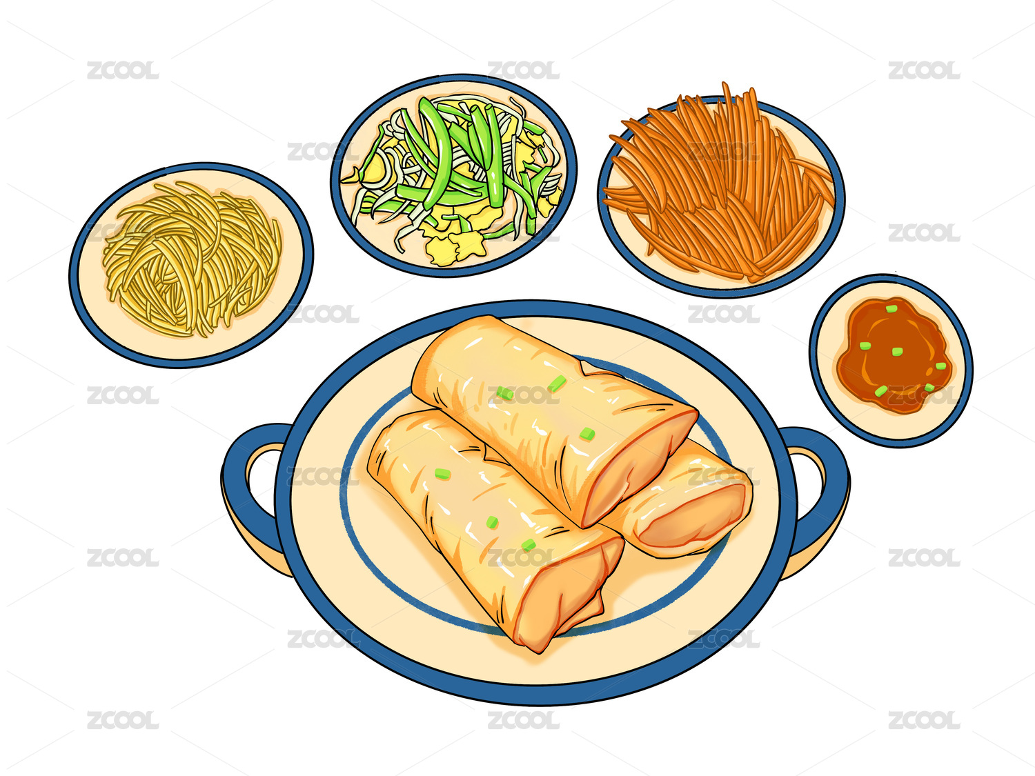 立春美味春卷土豆絲炒合菜胡蘿卜