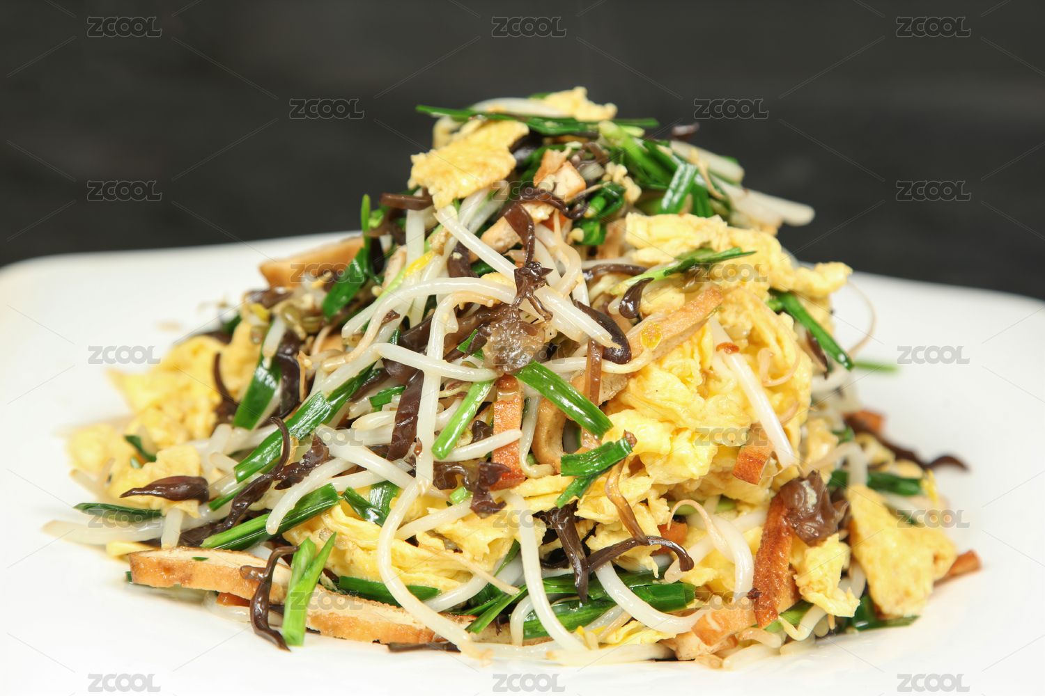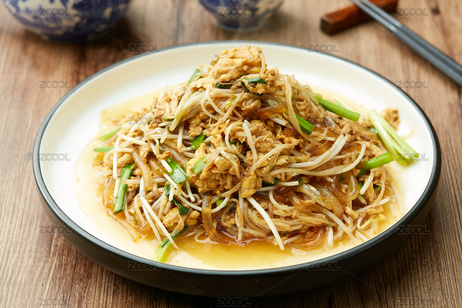 中式菜肴炒合菜,韭菜豆芽雞蛋炒粉絲
