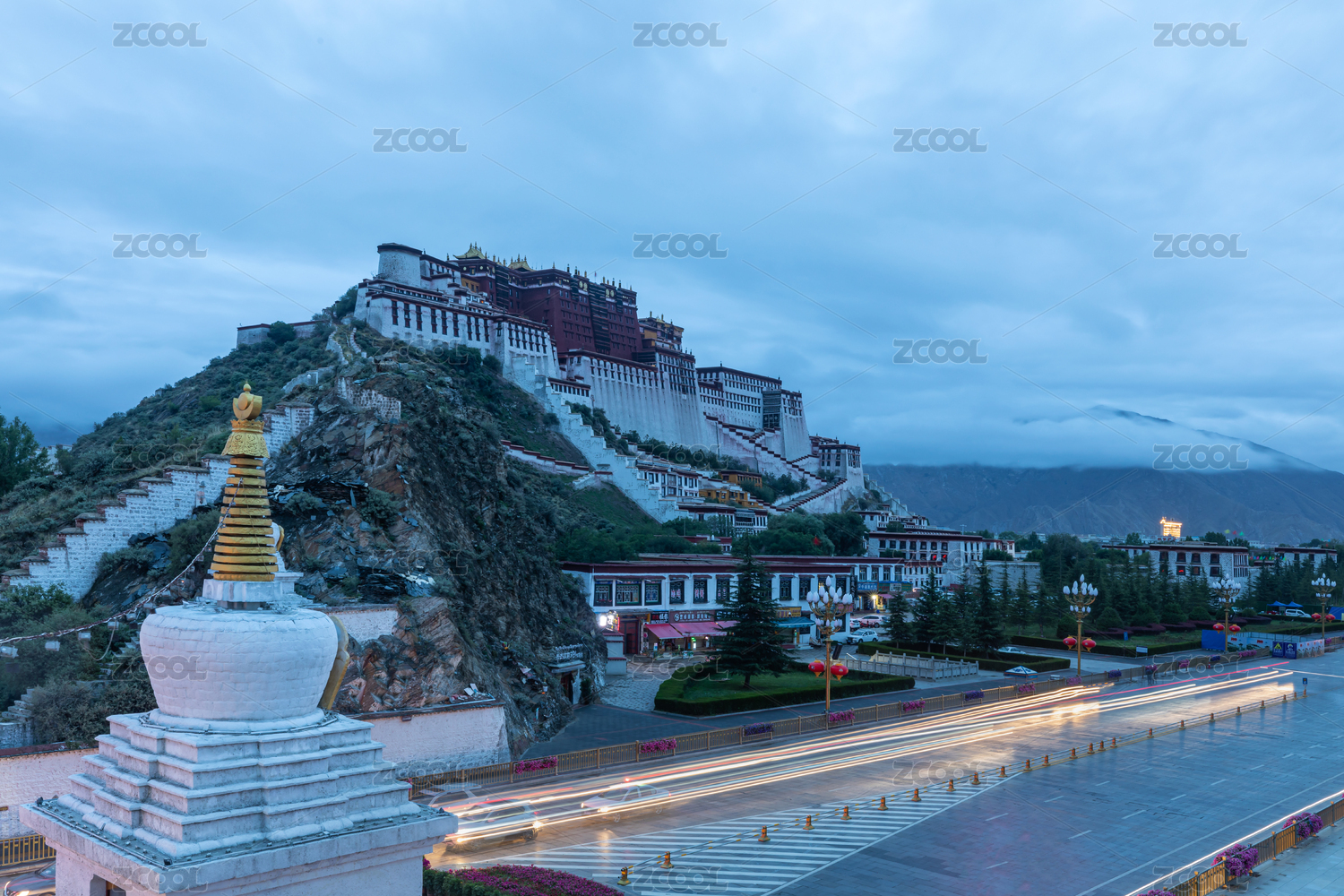 中國西藏拉薩市布達(dá)拉宮建筑夜景