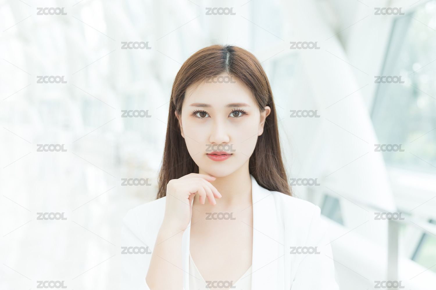 白色背景里身穿西裝的商務(wù)女性 正裝 自信