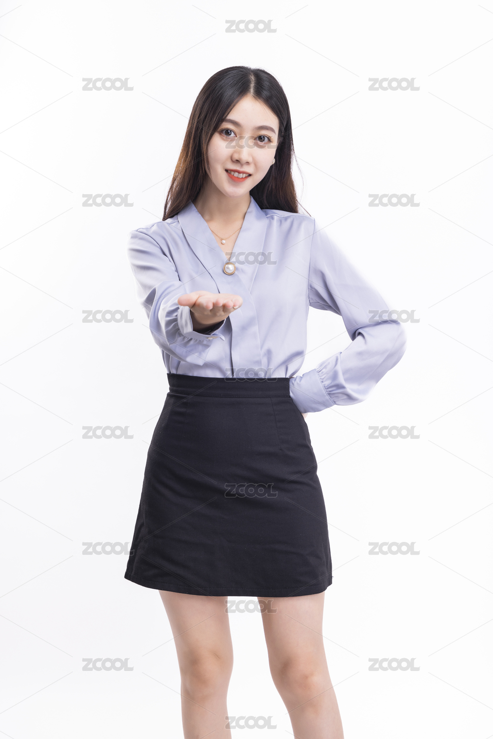 白色背景下穿著黑色短裙拿著文件的商務(wù)女性