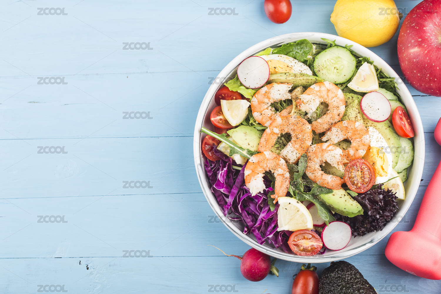 搭配豐富新鮮蔬果的蝦仁沙拉