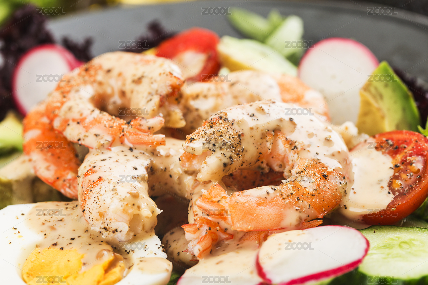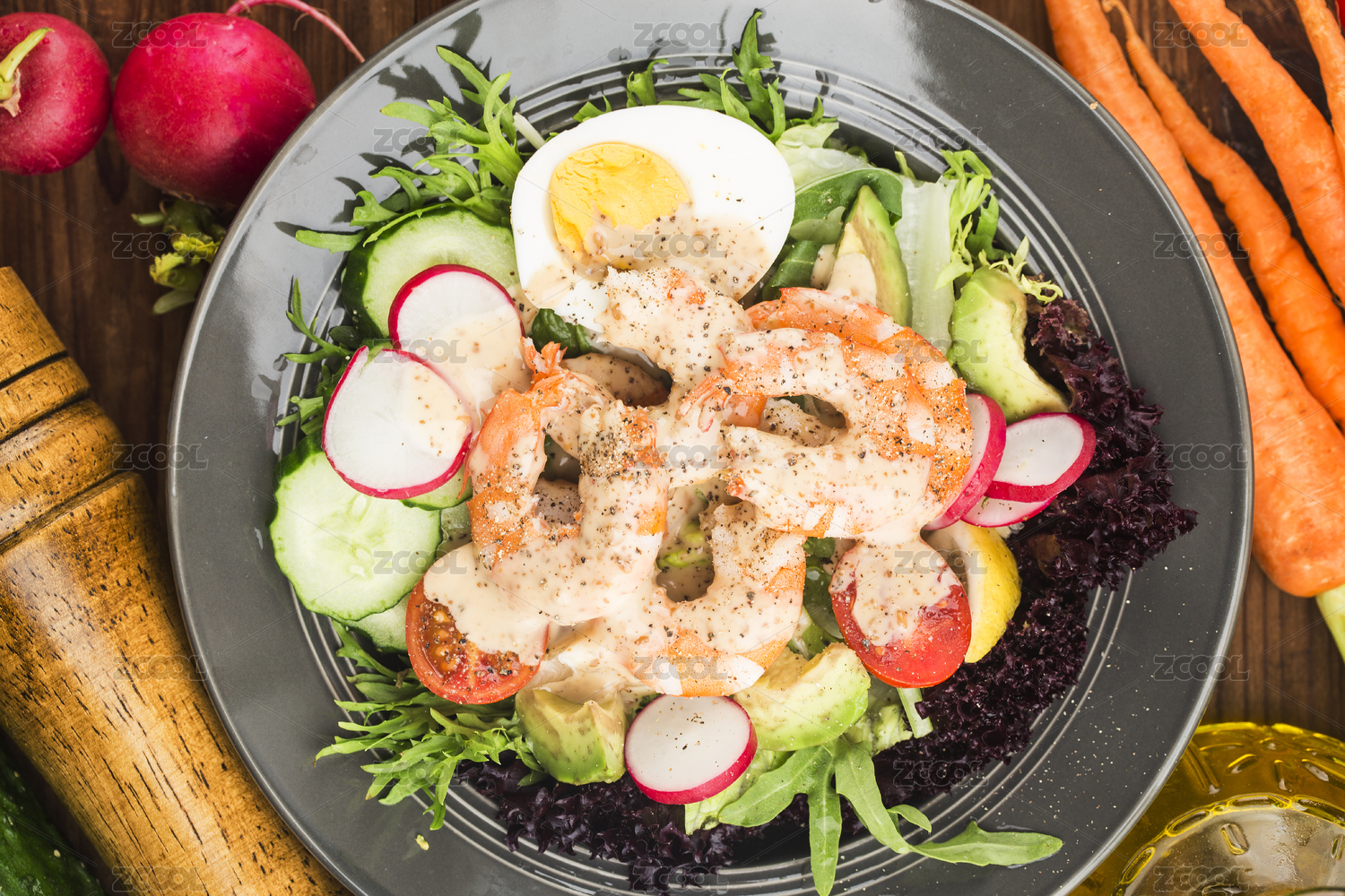 盤子里的鮮蝦仁沙拉